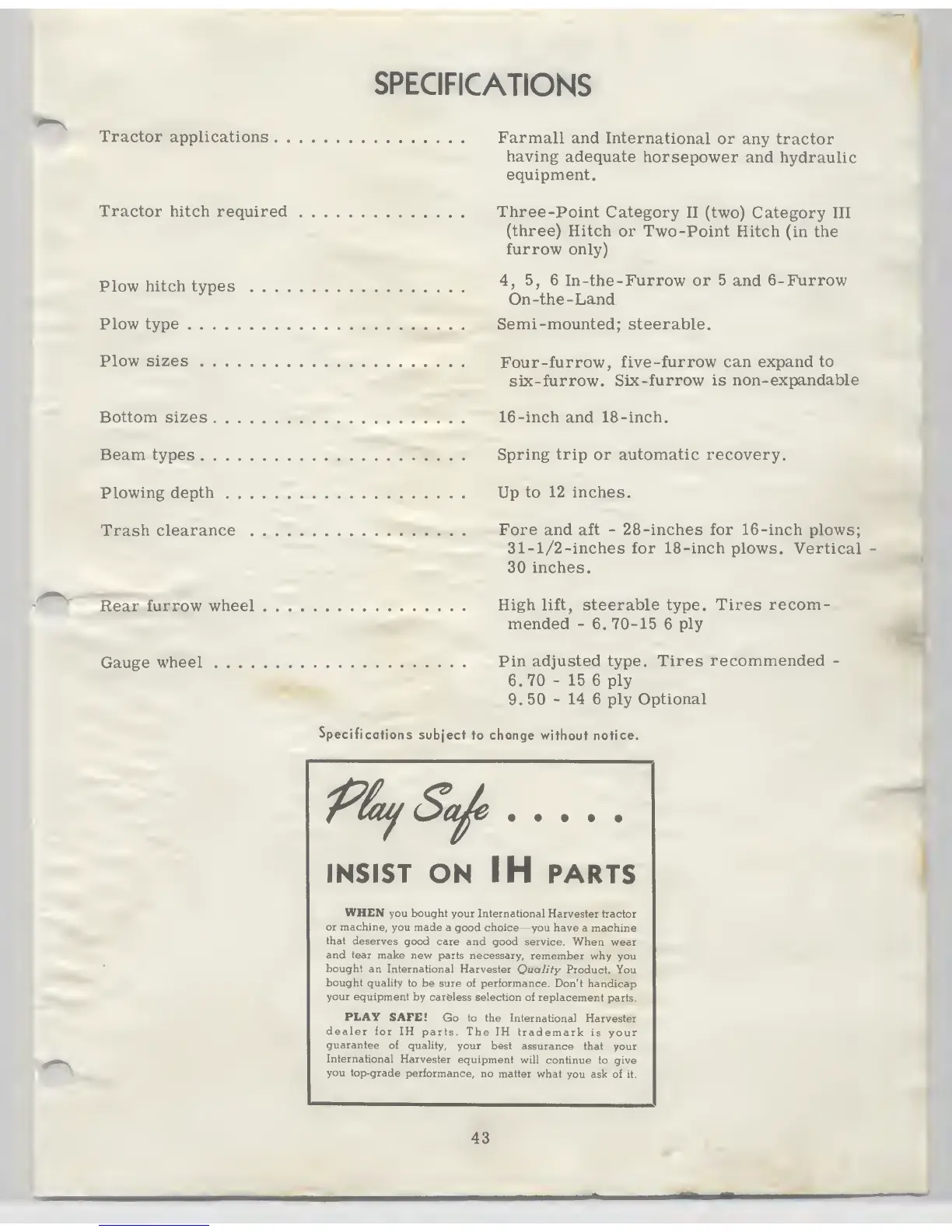 IH parts. The