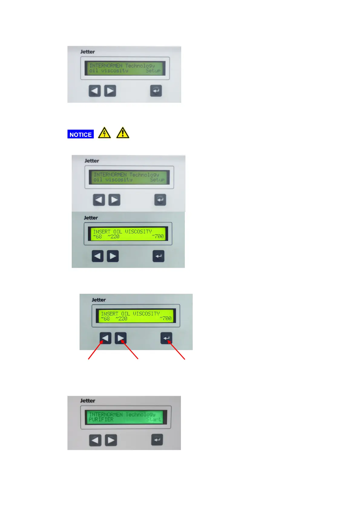 • This message is for selection of the viscosity of the oil which will be purified.