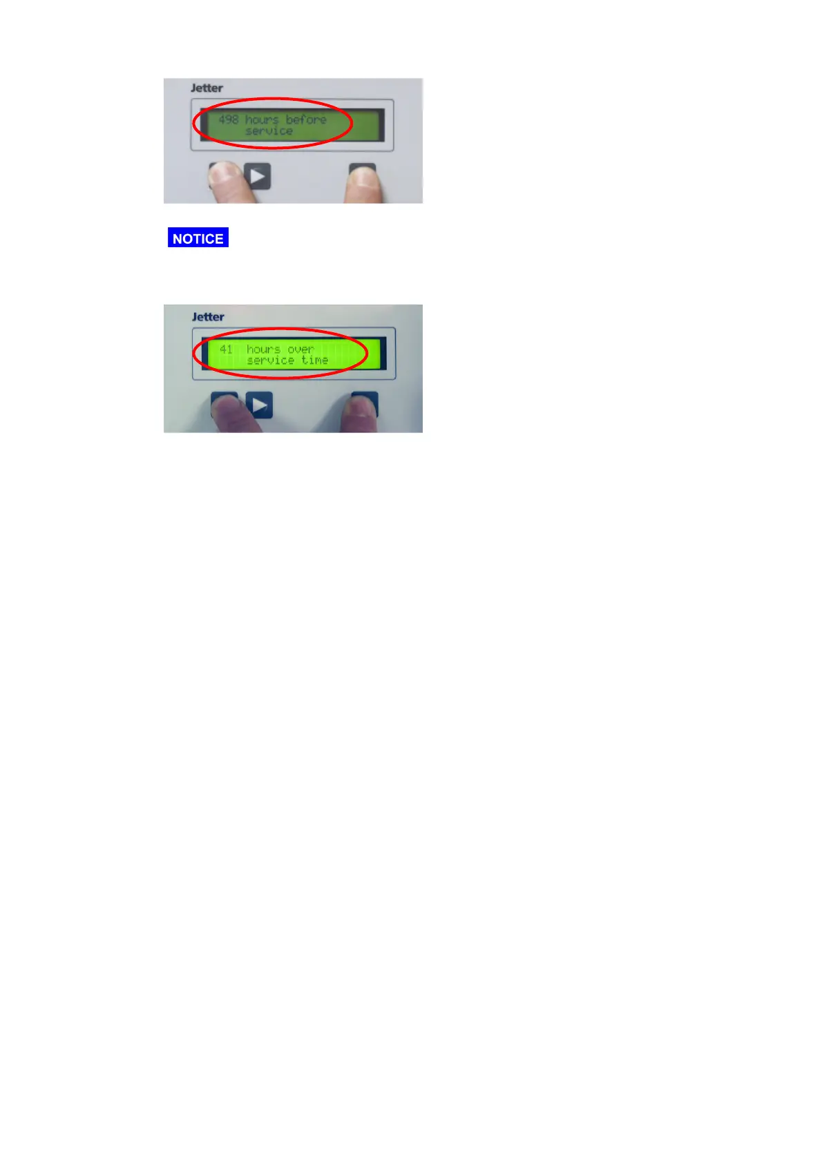 • If the maintenance interval is exceeded, pushing these buttons will display the time