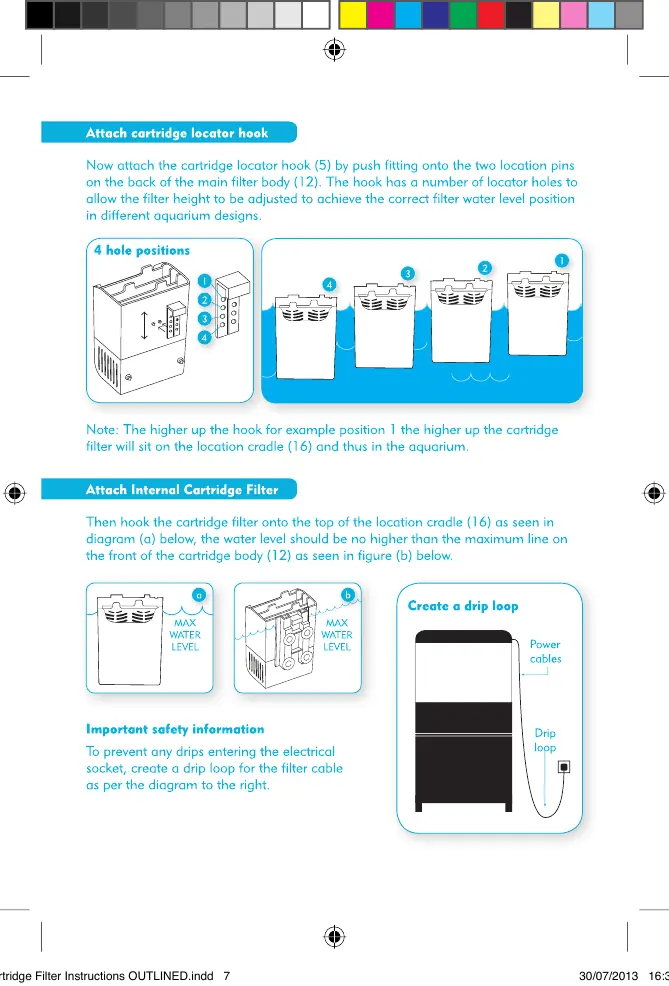 Interpet CF1 - Attach cartridge locator hook; Attach Internal Cartridge Filter; Important safety information