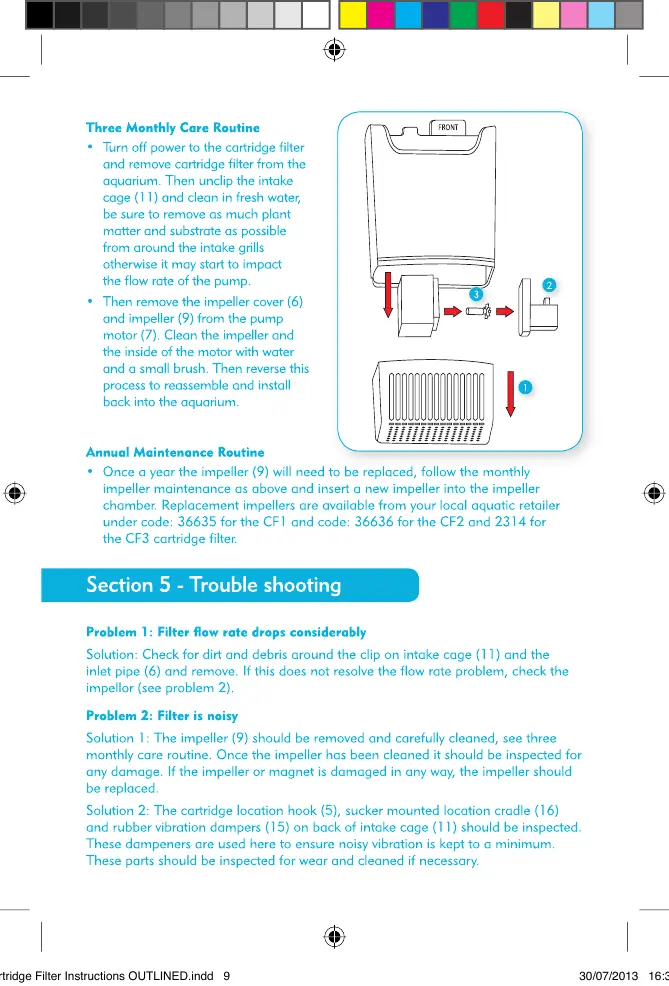 Interpet CF1 - Three Monthly Care Routine; Annual Maintenance Routine; Section 5 - Trouble shooting; Problem 1: Filter flow rate drops considerably