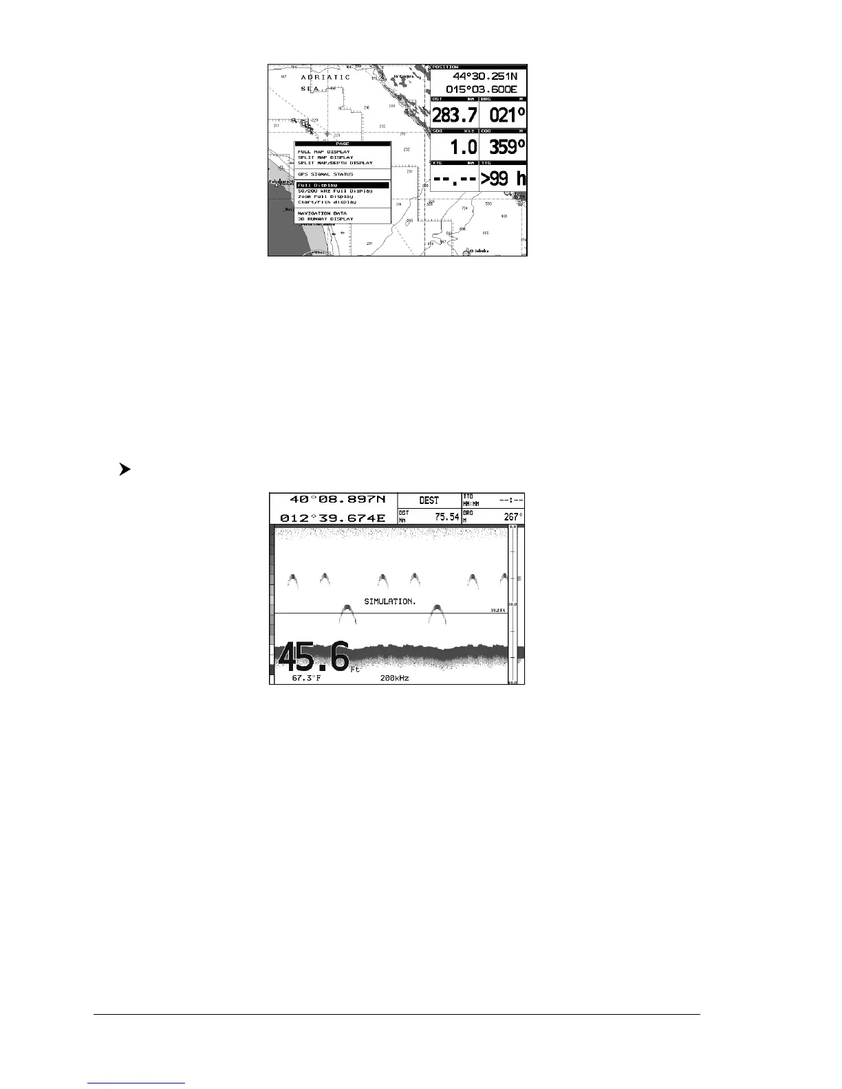 200kHz Full Display, Zoom Full Display and Chart/Fish display. Move the