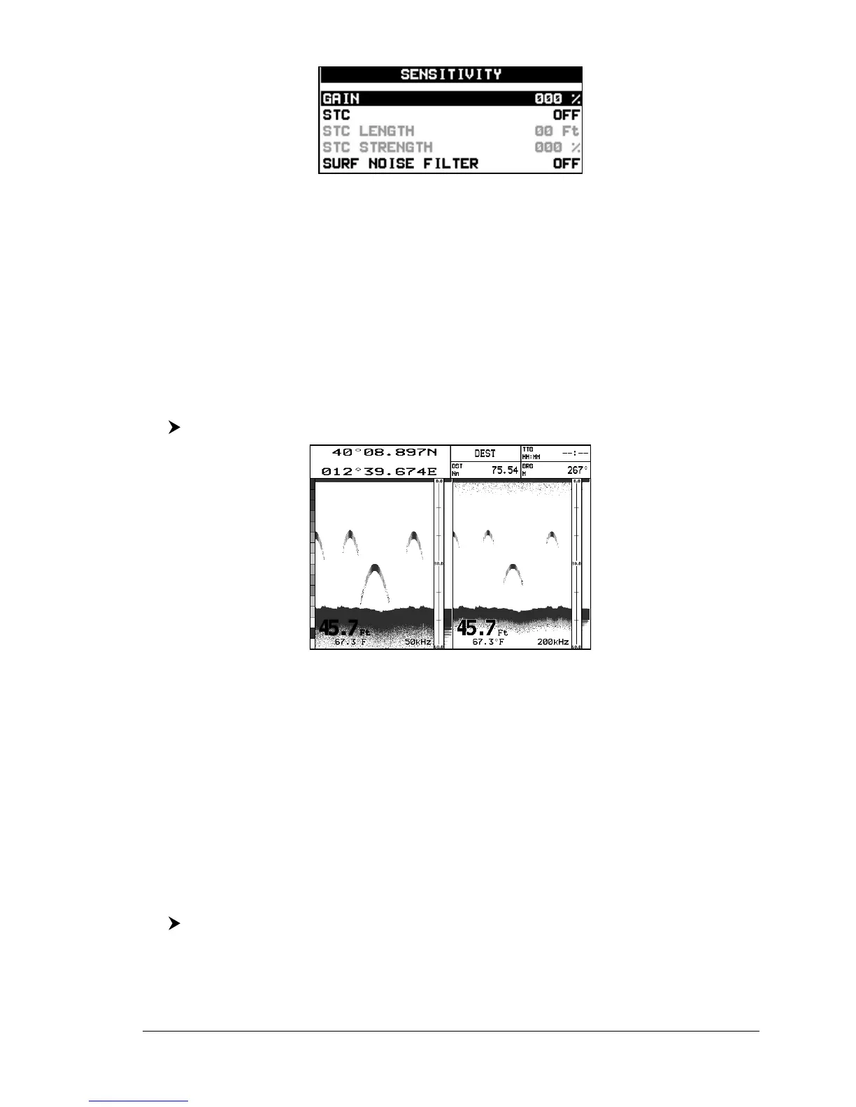 between the 50 and 200kHz displays. Moving the cursor up or down will move the