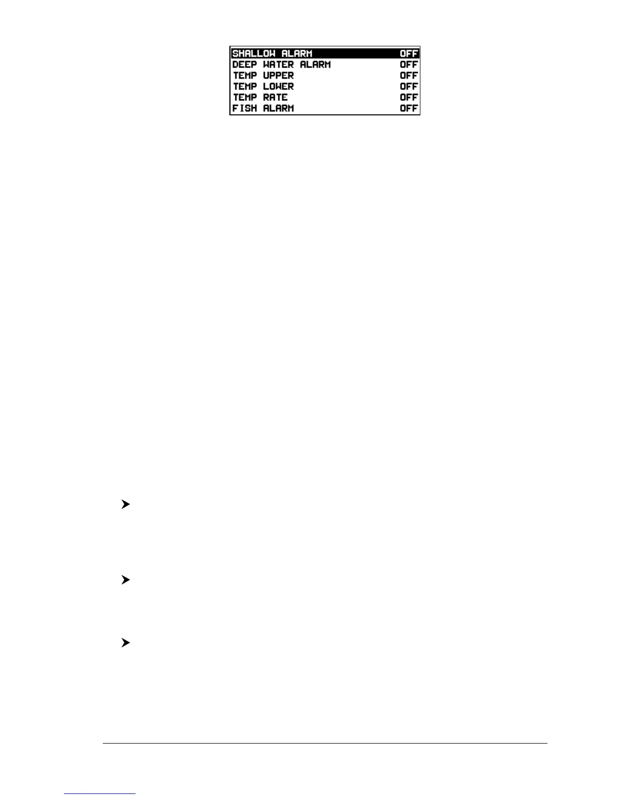 Fig. 3.1.12 - Fish Finder Alarms menu