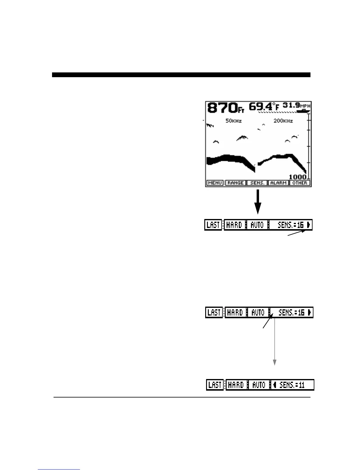 Press the soft key labeled "SENS." (for sensitivity) to bring