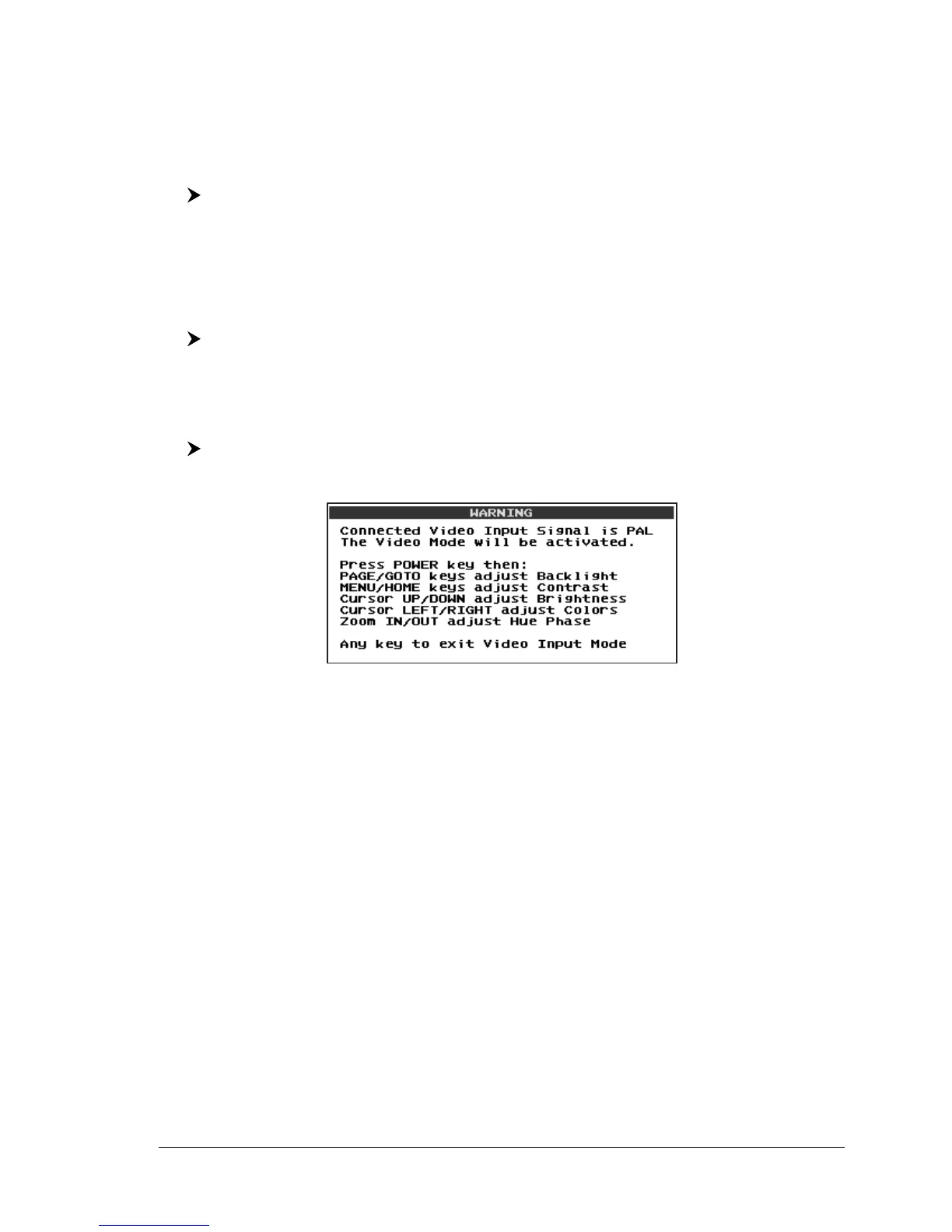 At the activation of the Video Mode the following messages are shown on a dedi-