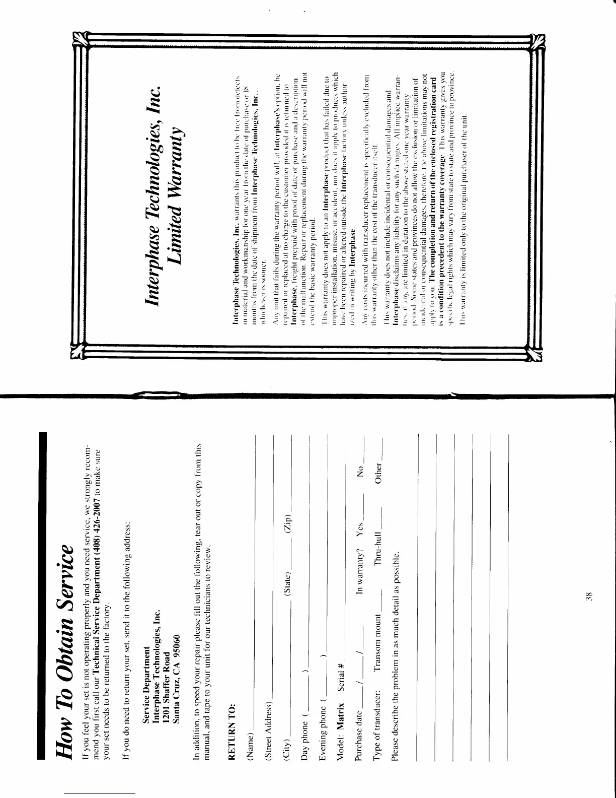 Interphase Matrix - Obtaining Service and Support; Limited Product Warranty