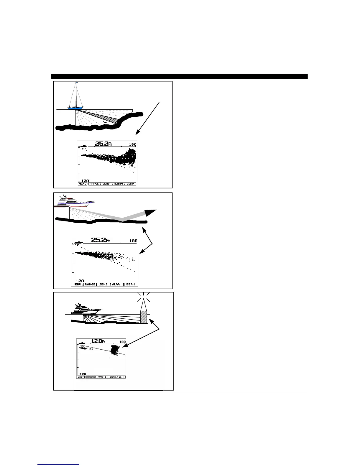 acoustic beam strikes underwater objects or the bottom, a