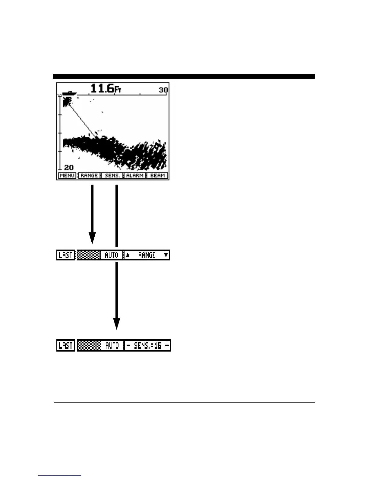 Press the soft key labeled "SENS" (for sensitivity) to bring