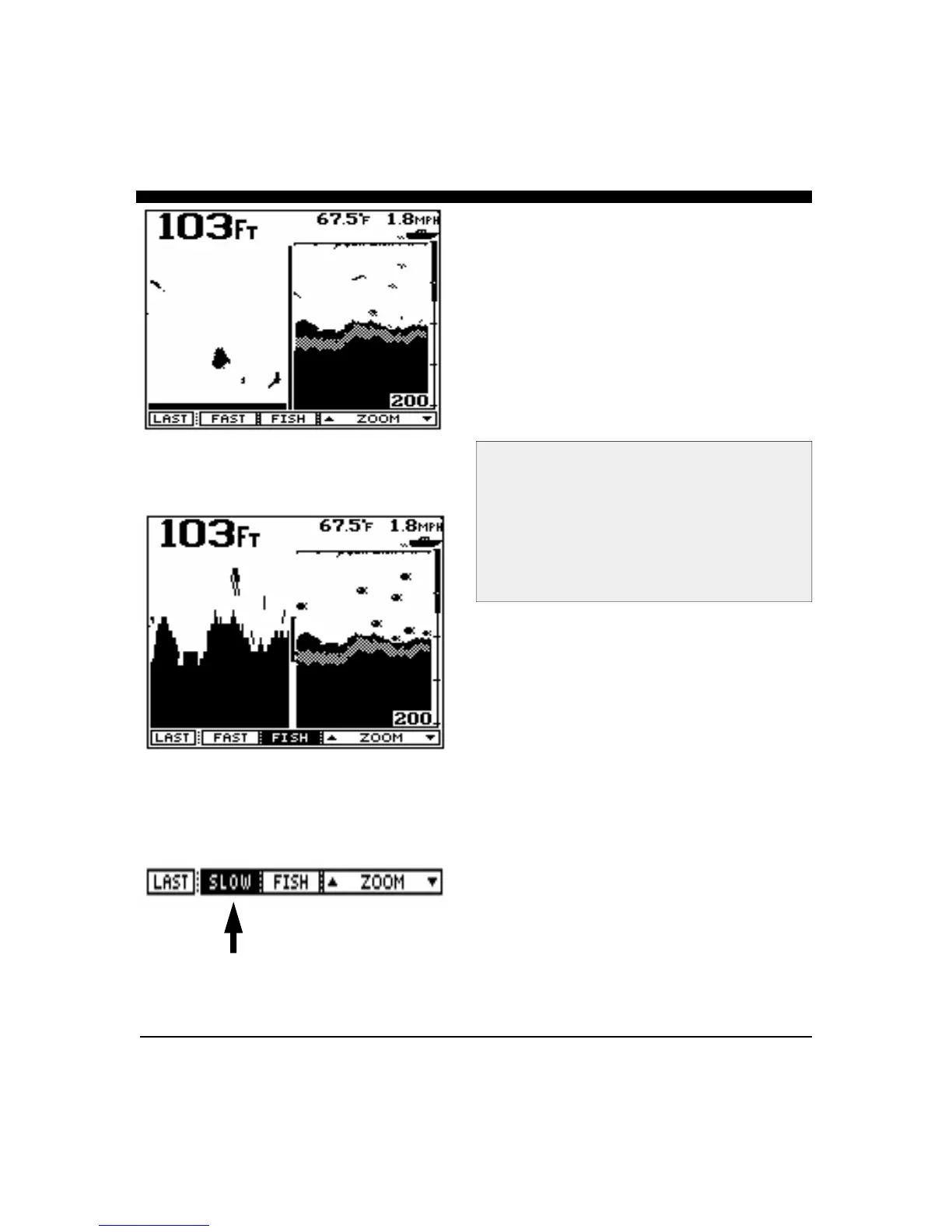 Zoomed Display with Fish Symbols ON