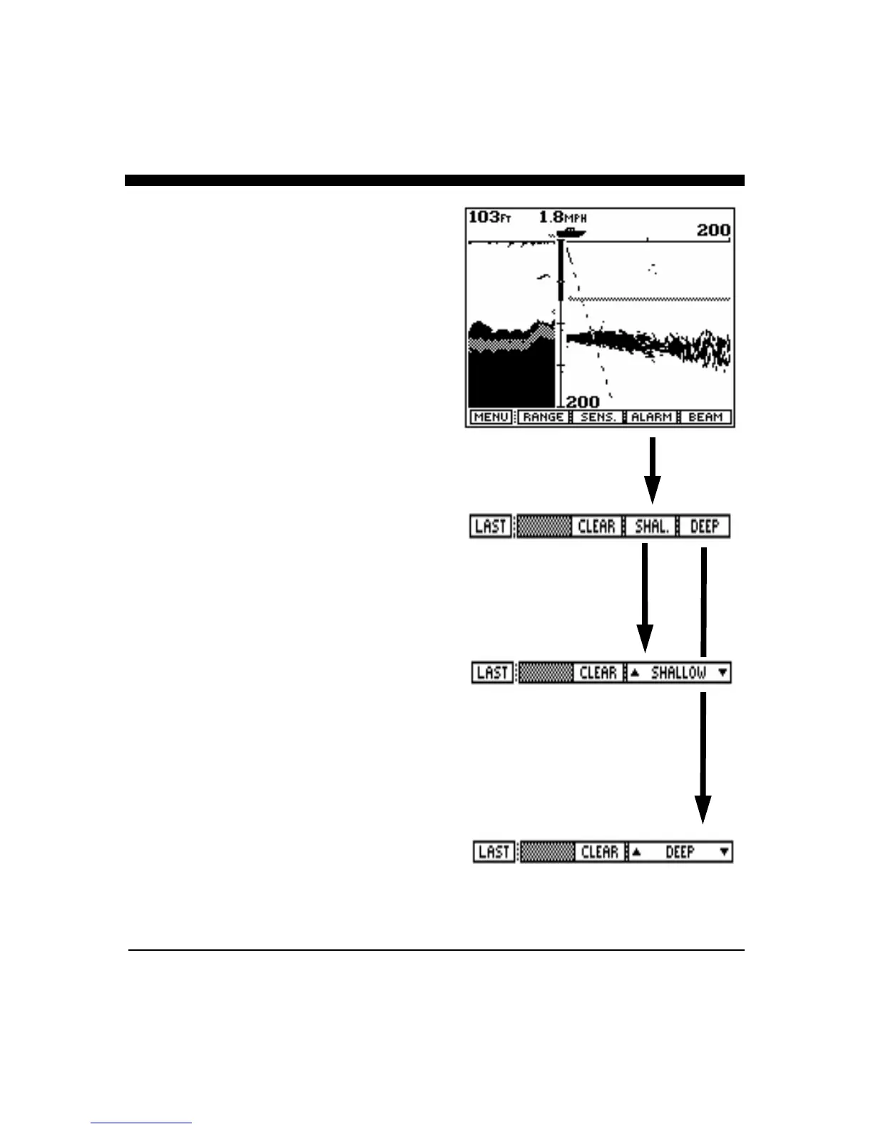 Alarm menu choices. Pressing the "DEEP" or "SHAL."