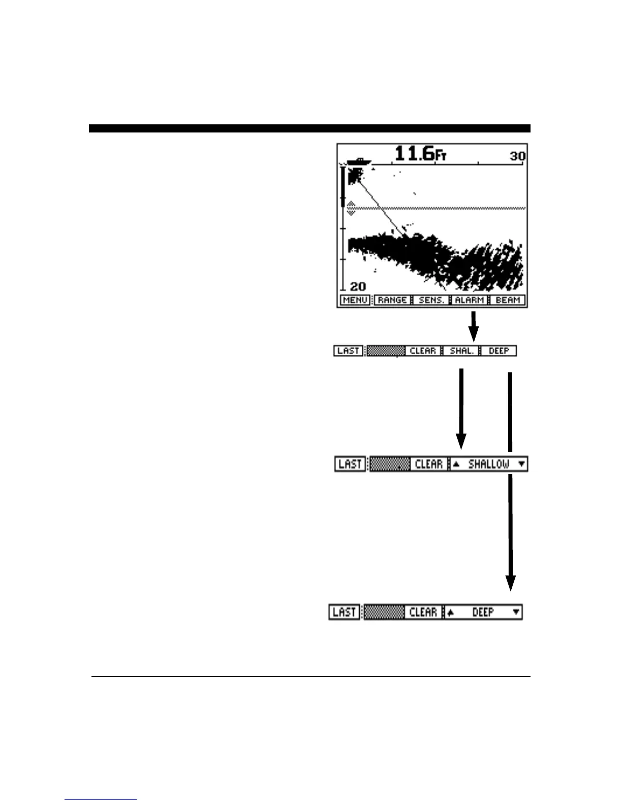 alarm menu choices. Pressing the "DEEP" or "SHAL."