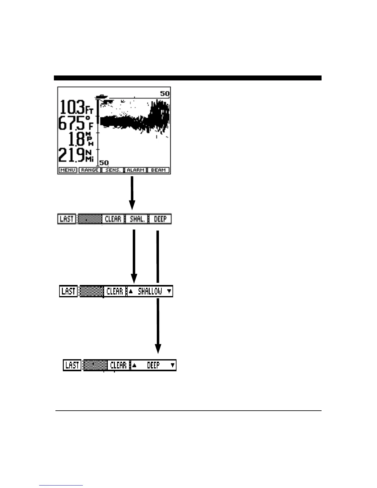 menu choices. Pressing the "DEEP" or "SHAL." soft keys