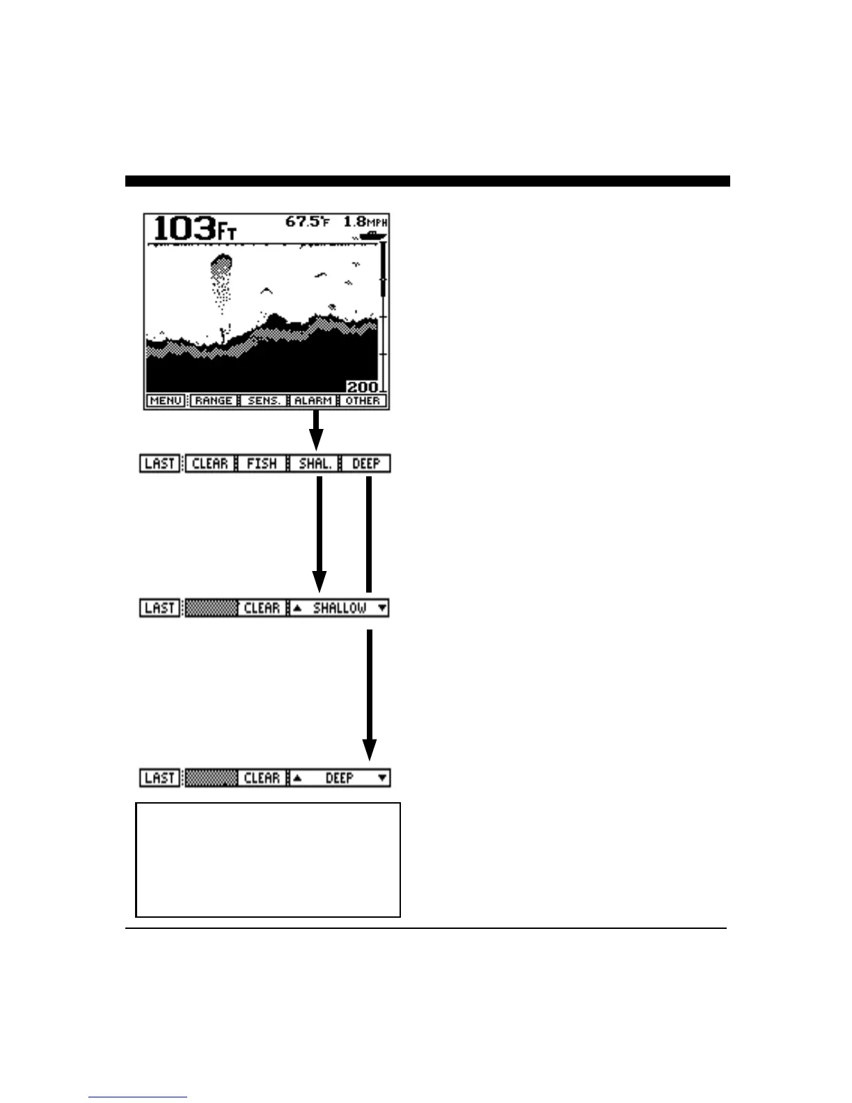 Alarm menu choices. Pressing the "Deep" or "Shal." soft