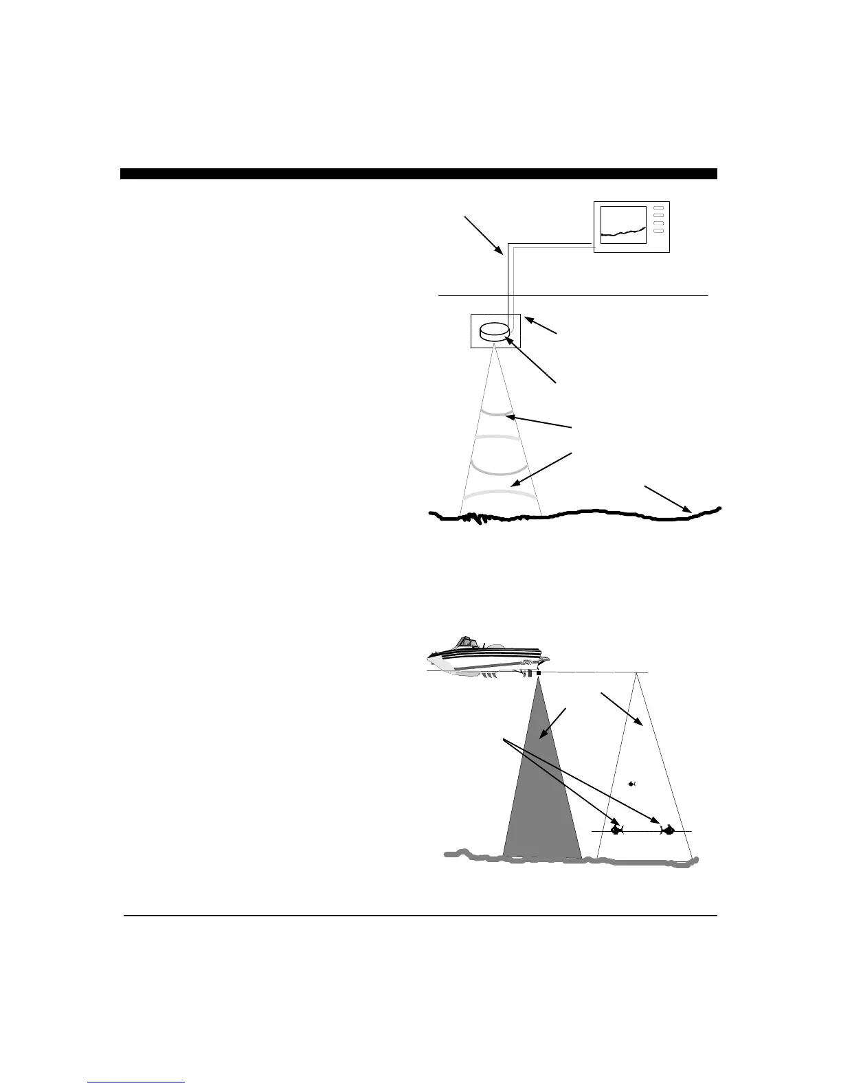 an object, such as the bottom or suspended fish. When