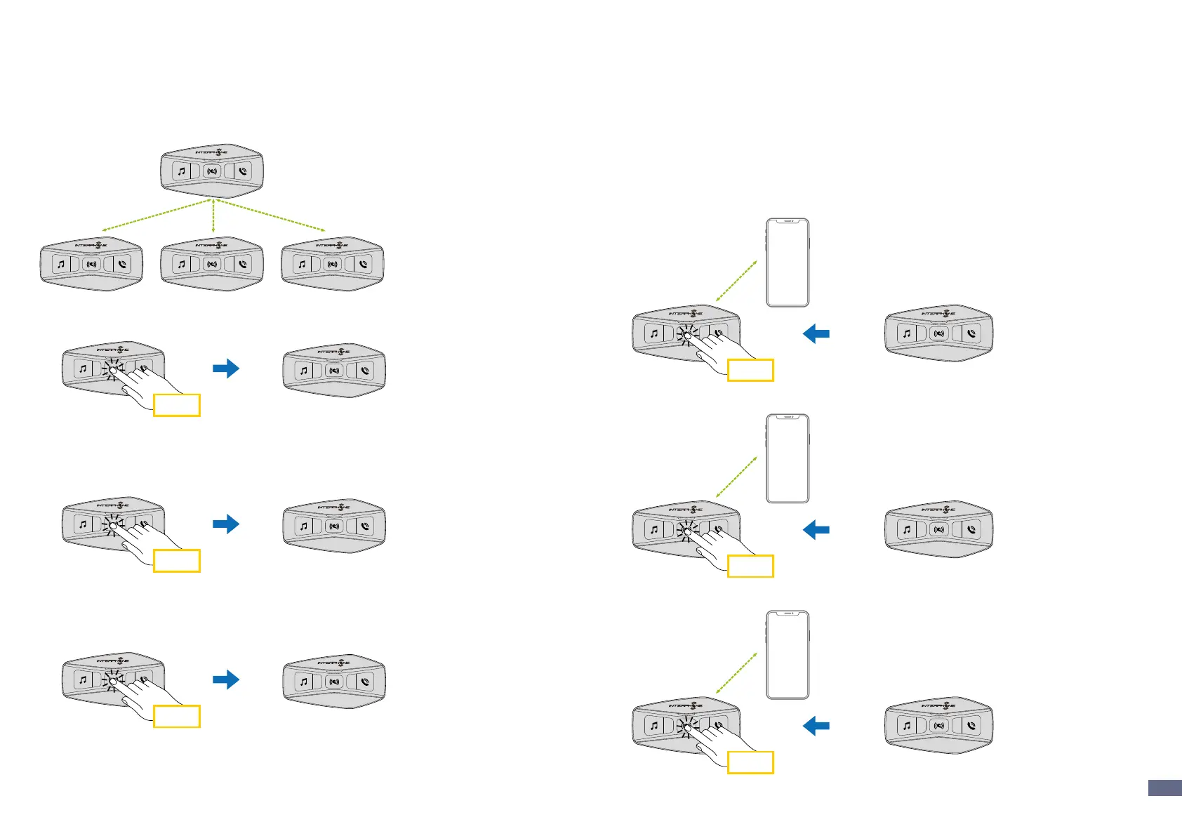the INTERCOM button (center button), according to the diagram below.