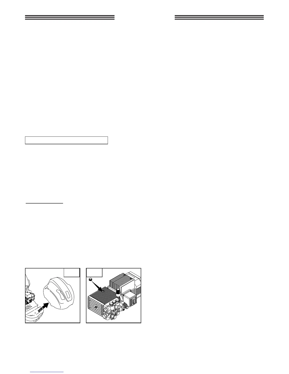 • Dévissez le bouchon de vidange sur le fond de la pompe et la jauge noire et jaune.