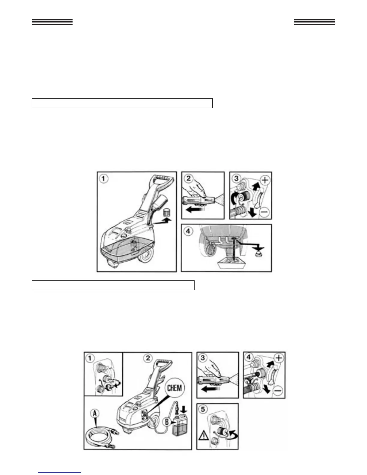 en la toma externa de detergente (CHEM) y la extremidad con el filtro del mismo en el depósi-