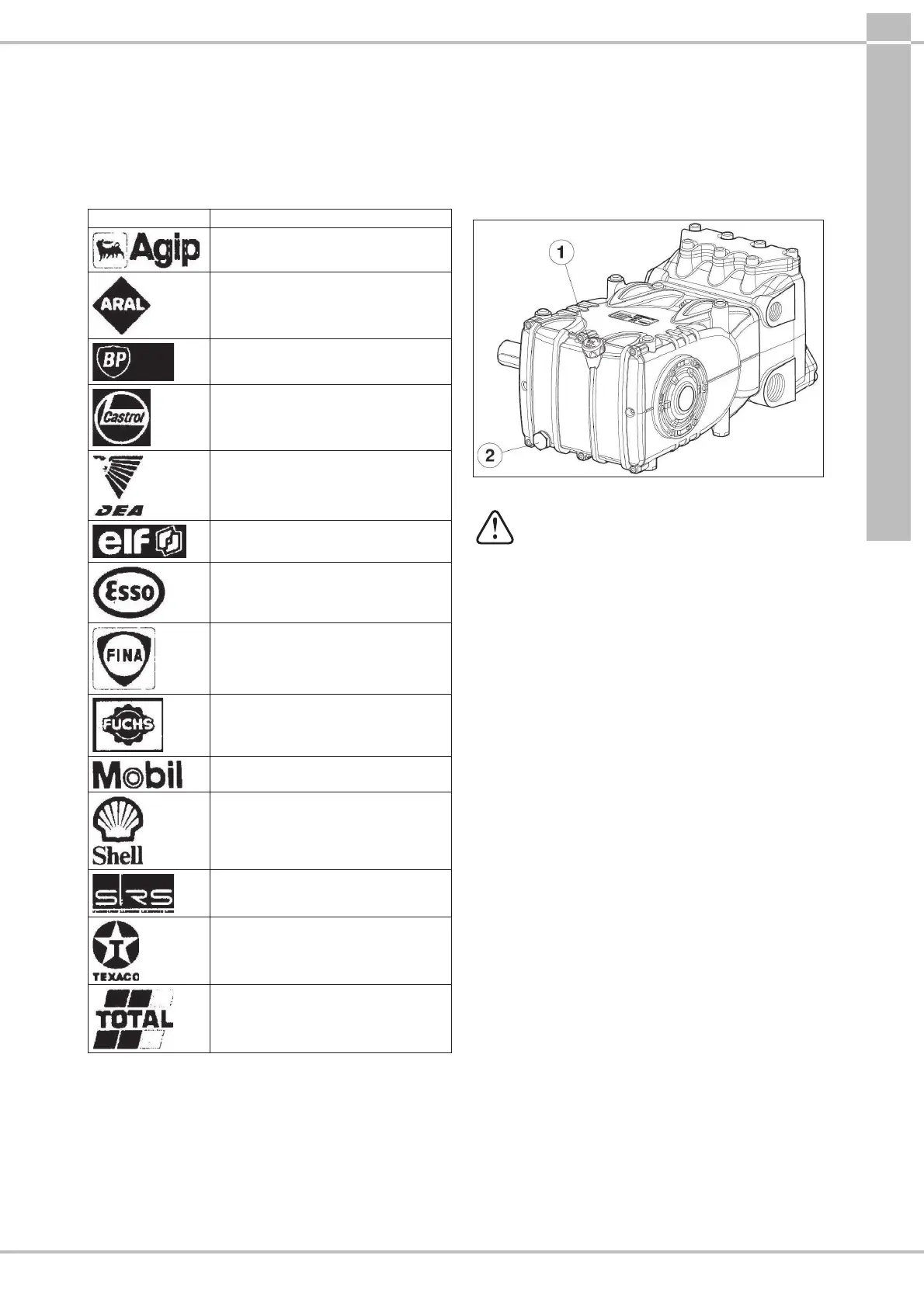 Some types of recommended oil are indicated in the table