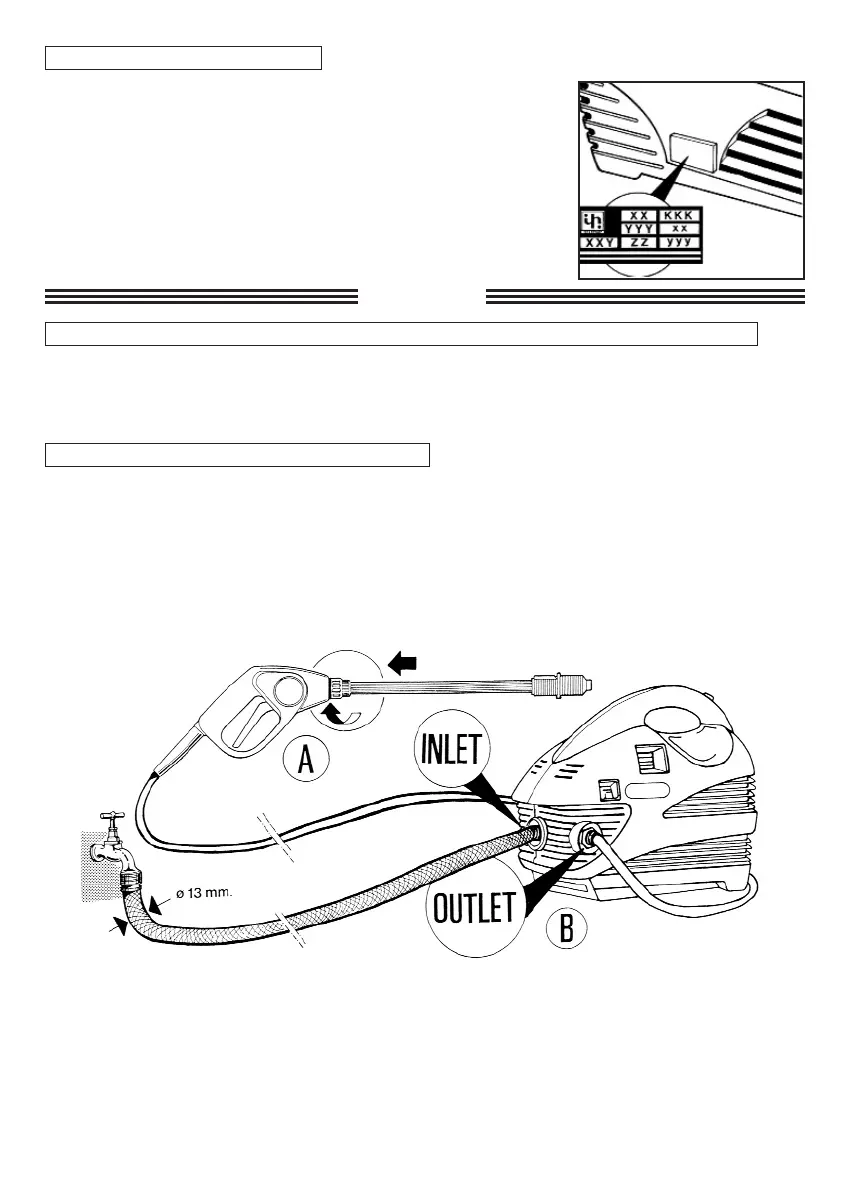 Подключить рукав высокого давления к выходному отверстию аппарата "OUTLET" (B) и