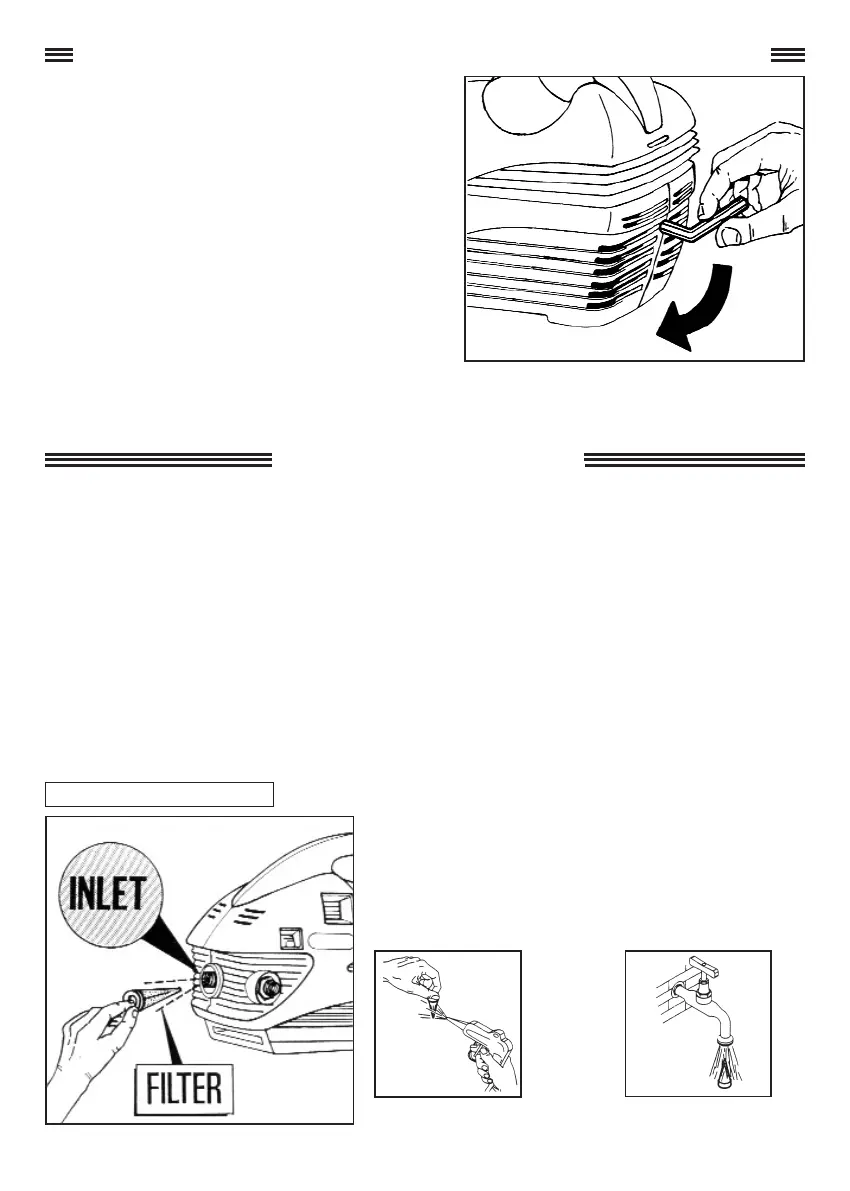 • Периодически проверять гидромойку, органы, находящиеся под давлением (шланг,