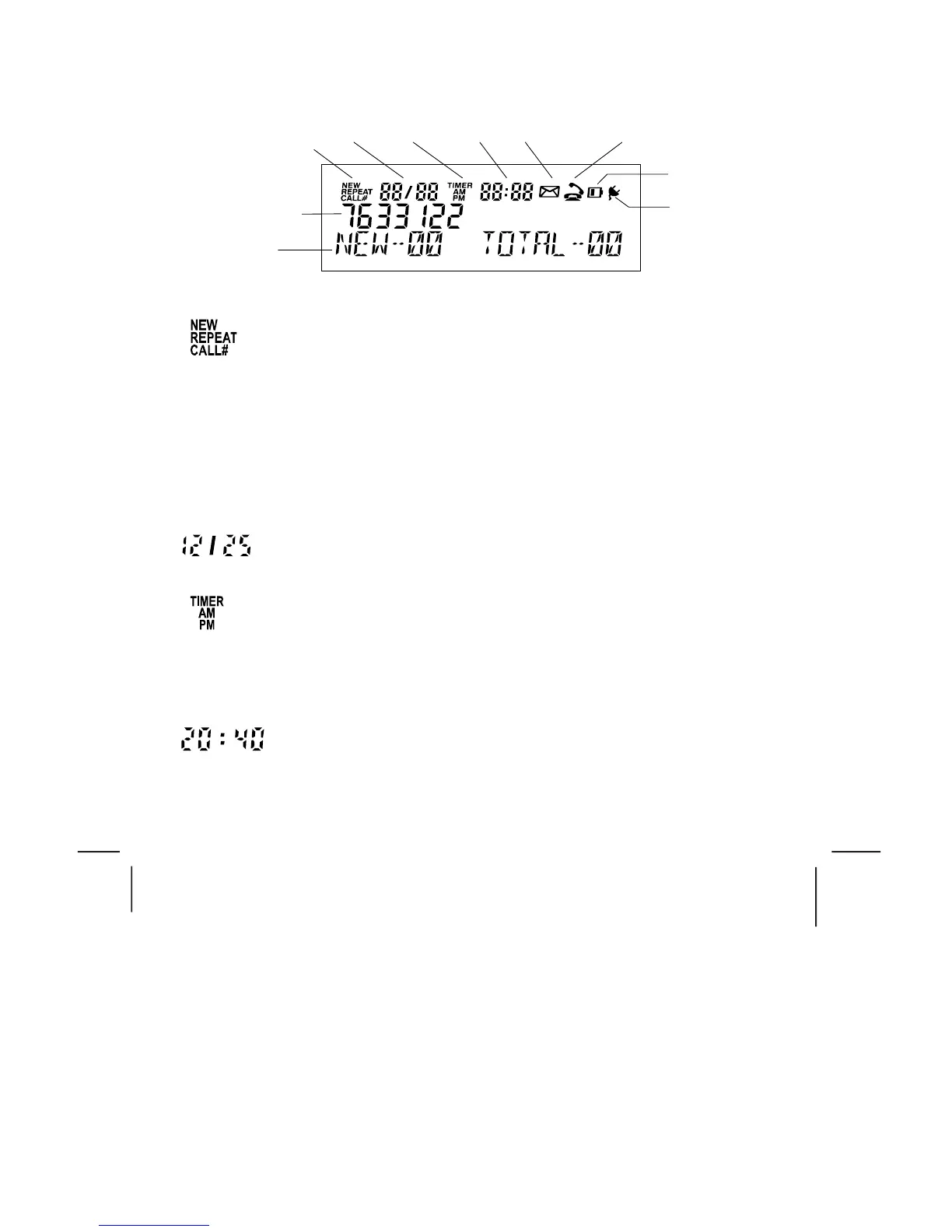 Timer - indicates Call Timer or Stop Watch mode is active,