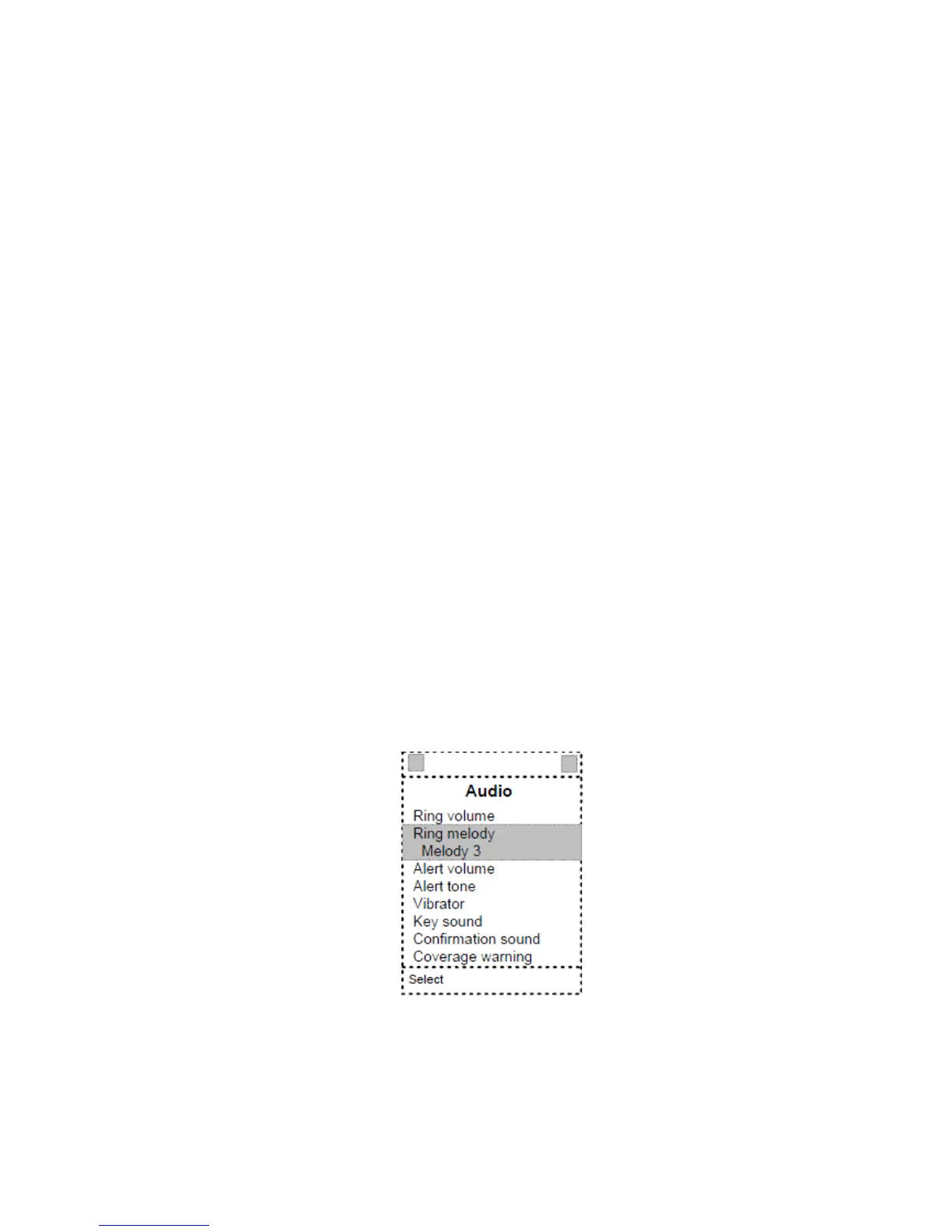 by pressing navigation key Up or Right. The volume can be decreased by pressing navigation key Down