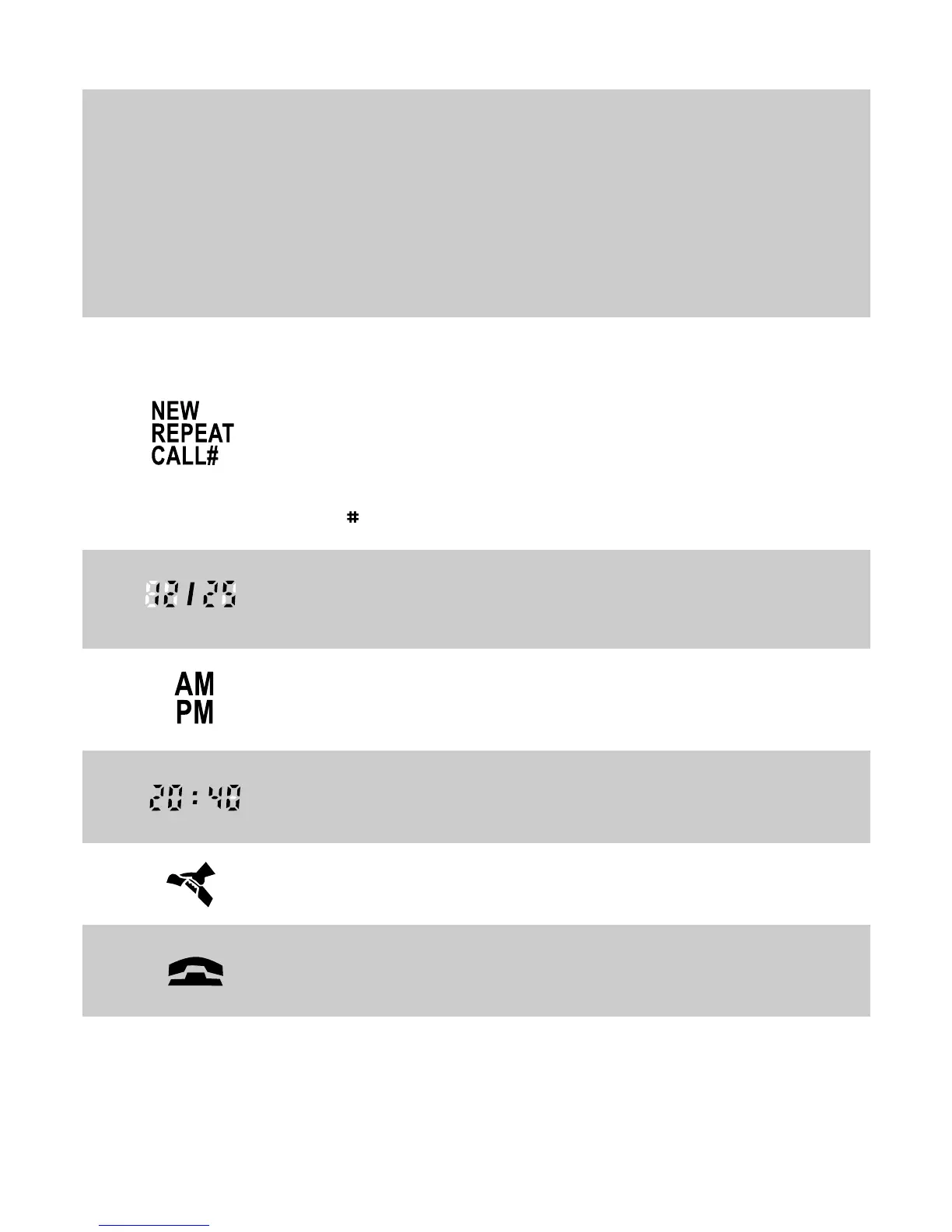 Calls list (displays only in 12 hour mode)