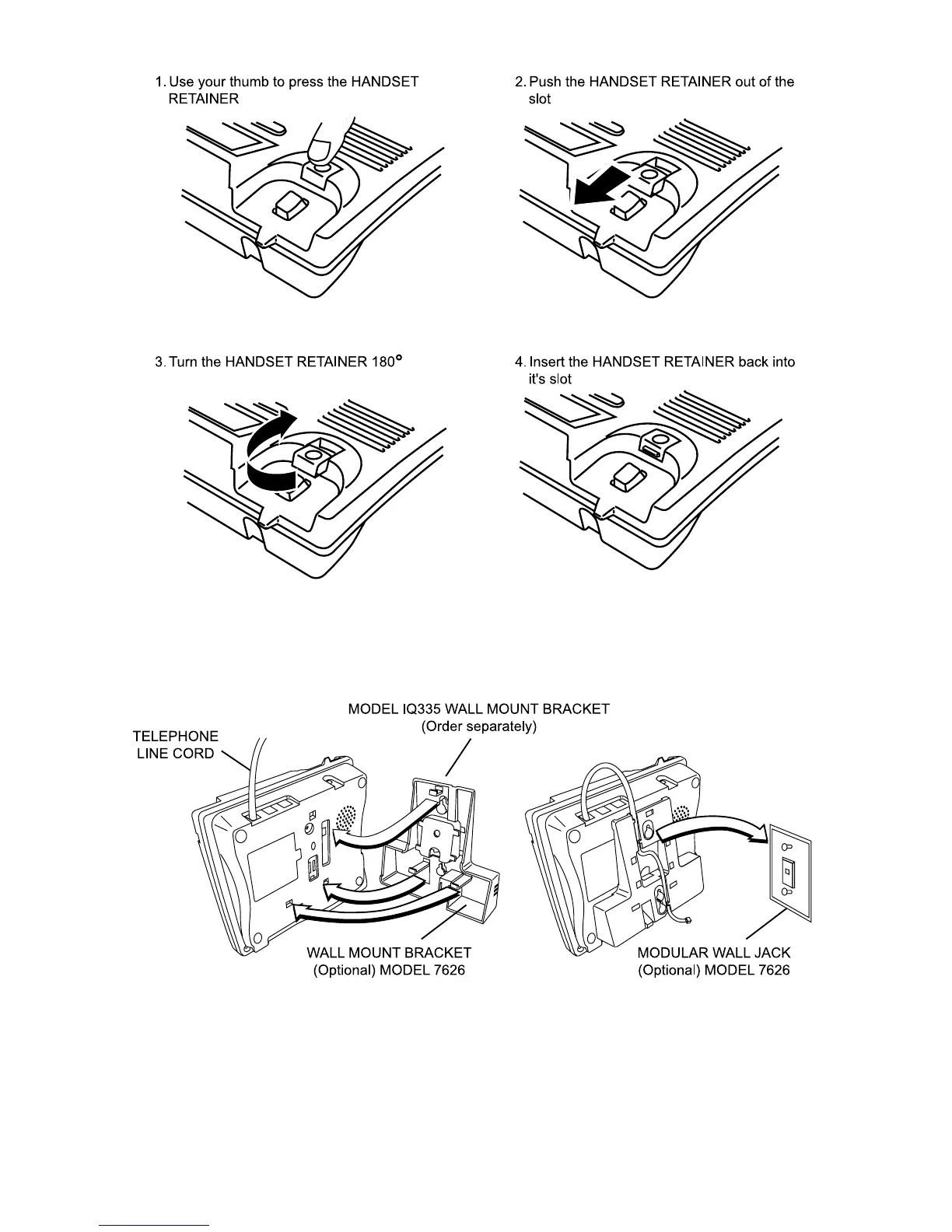 Note: The IQ335 Wall Mount Bracket, 7626 Modular Wall Jack and link cord illustrated in Figure 6B are