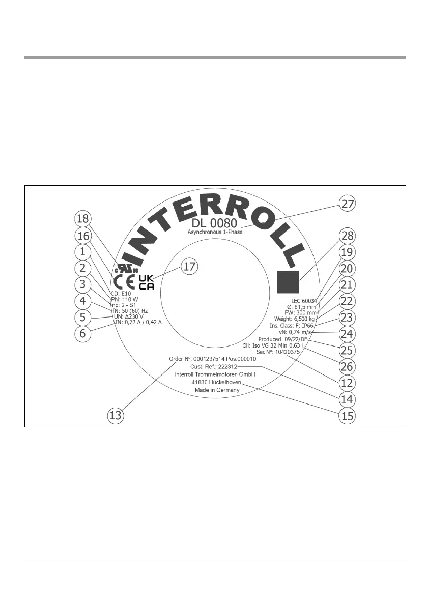 The information on the type plate of the drum motor is used to identify it. This is the only way for the drum motor to