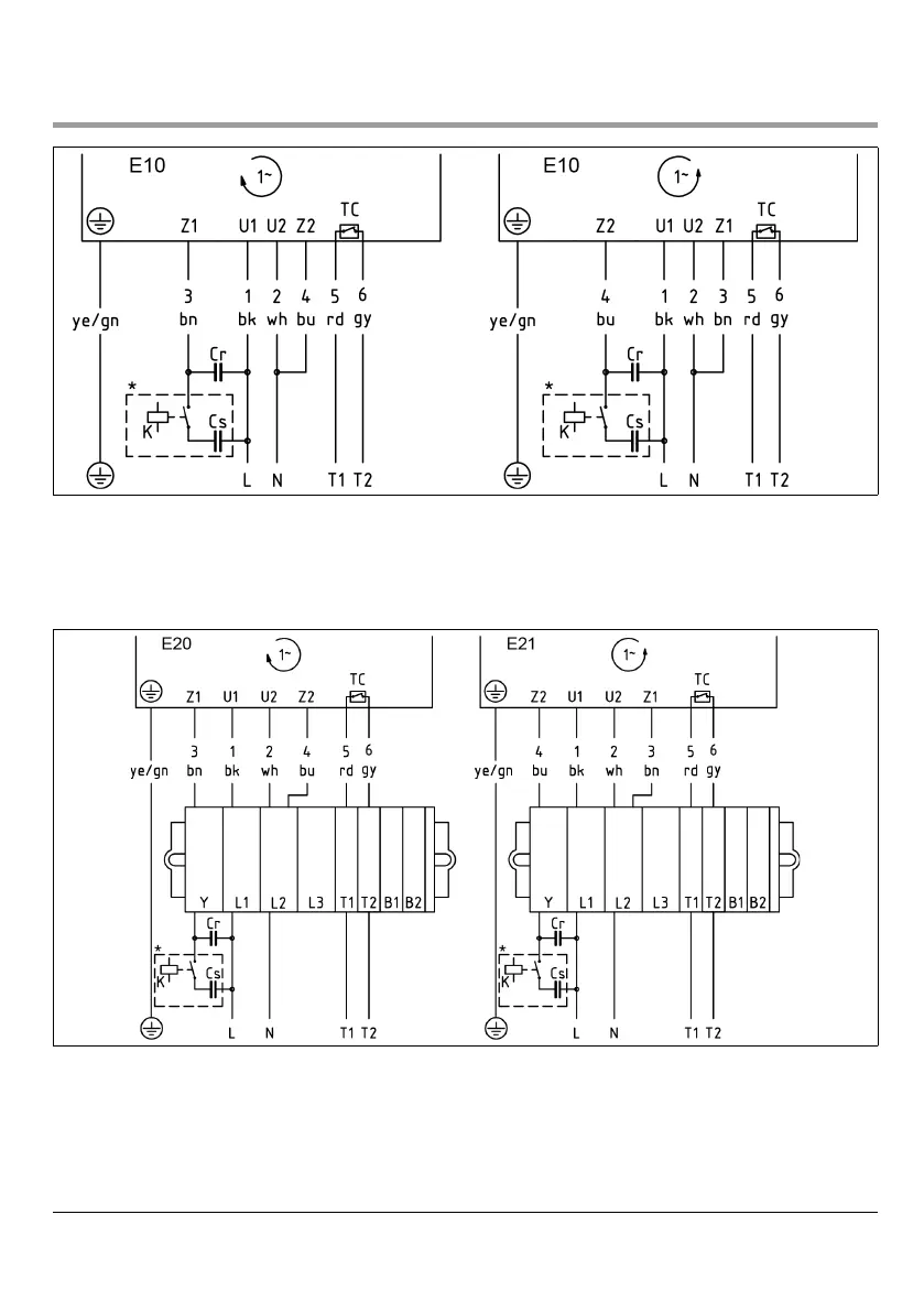 * A starting capacitor and a matching switching relay can be connected as an option to improve the starting torque