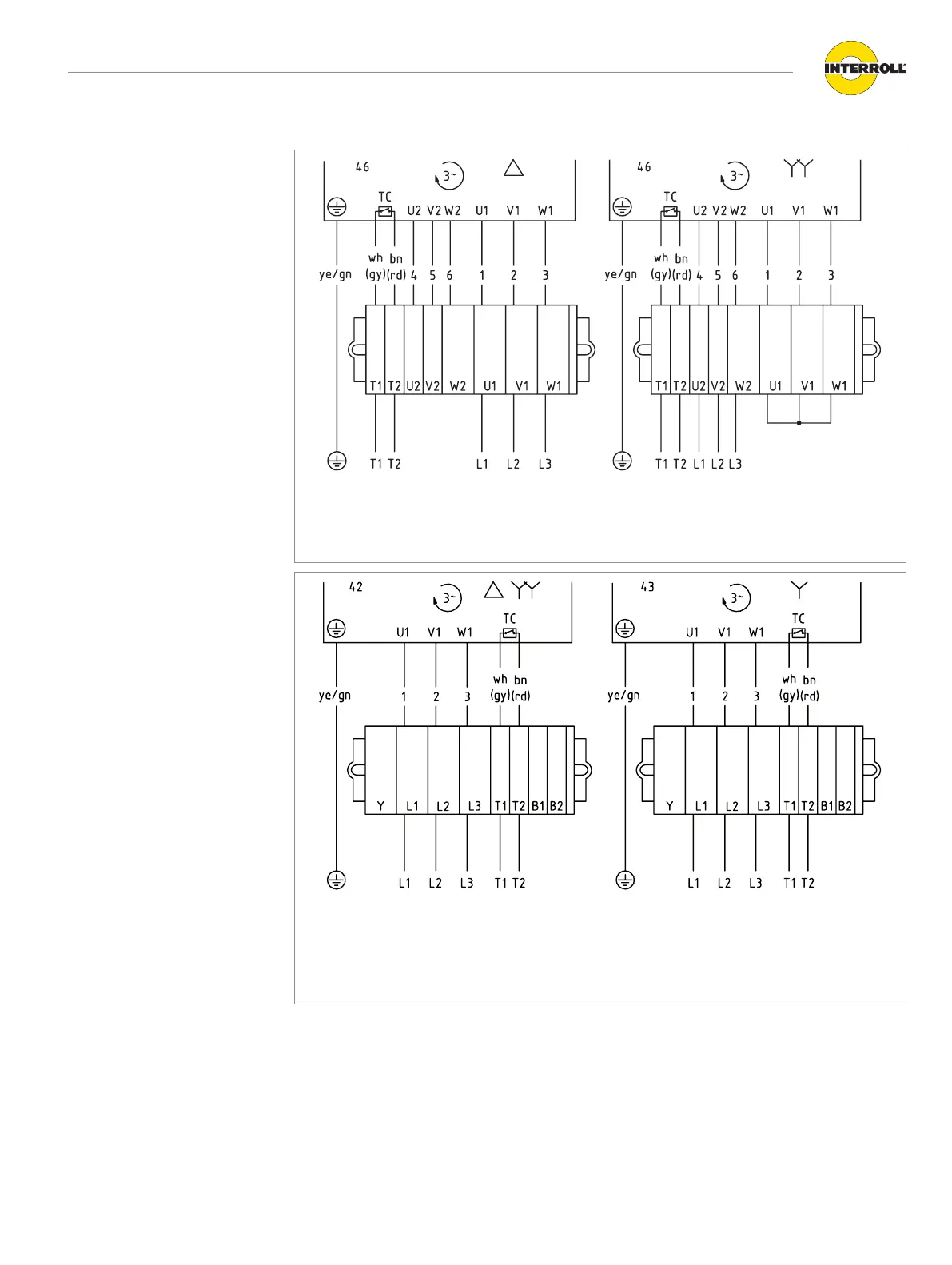 3-phase, winding for 1 voltage, delta or star or double star connection (inside connection)