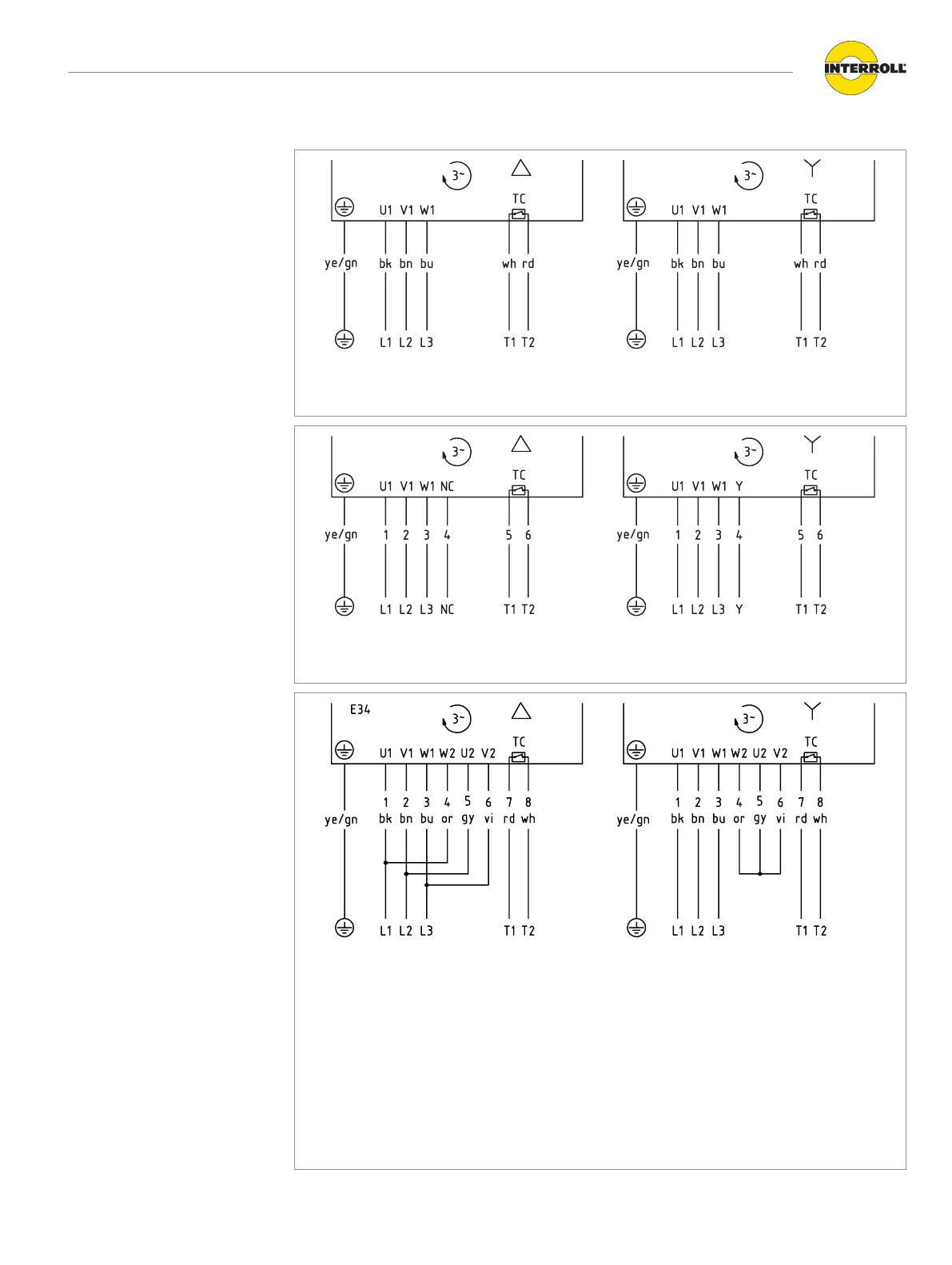 3-phase, 6-core cable, winding for 1 voltage, delta or star connection (internally connected)