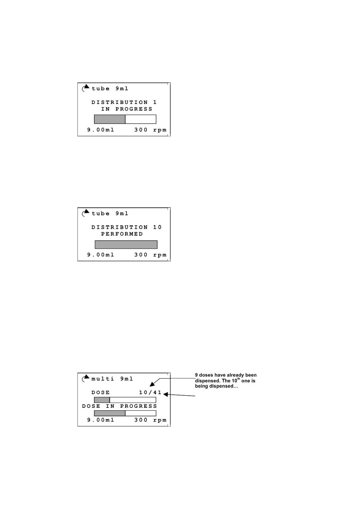 At the end of all dispensings, the screen displays nothing special but that the 2 progression indicators
