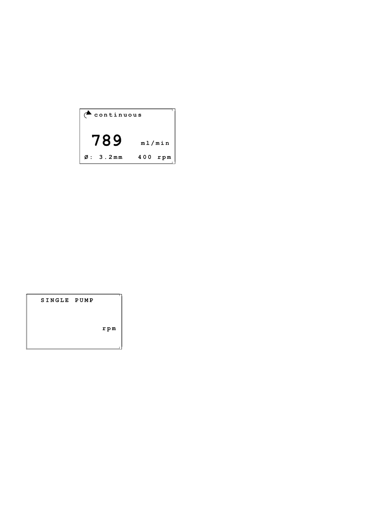 During dispensing, the pump displays the rotation speed of the motor in RPM.