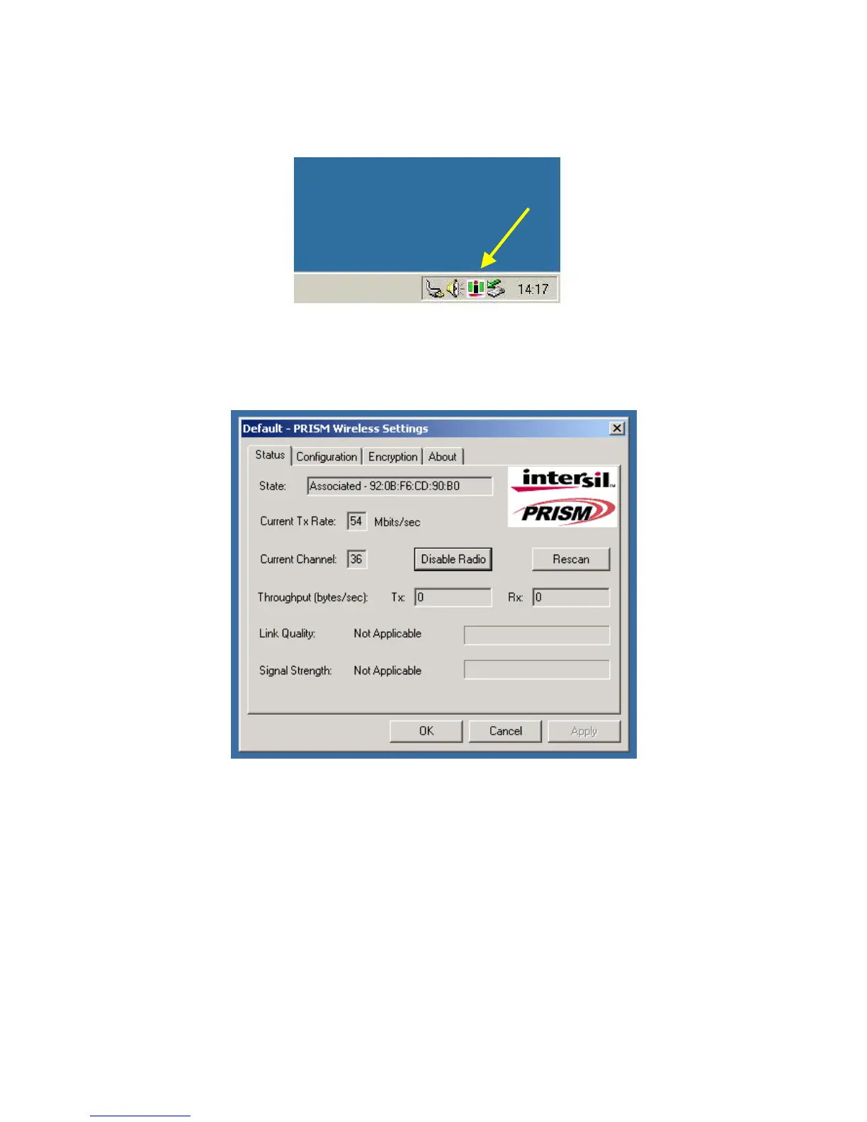 d-the Intersil WLAN icon will appear in system tray on the bottom right of the screen (see yellow