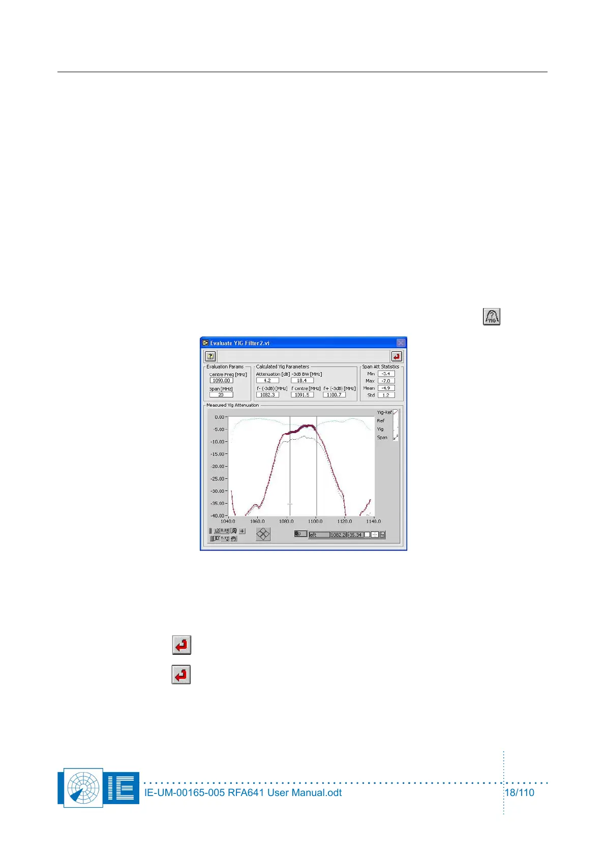 The Evaluate YIG Filter2.vi window will pop up, showing the attenuation vs. frequency of the YIG