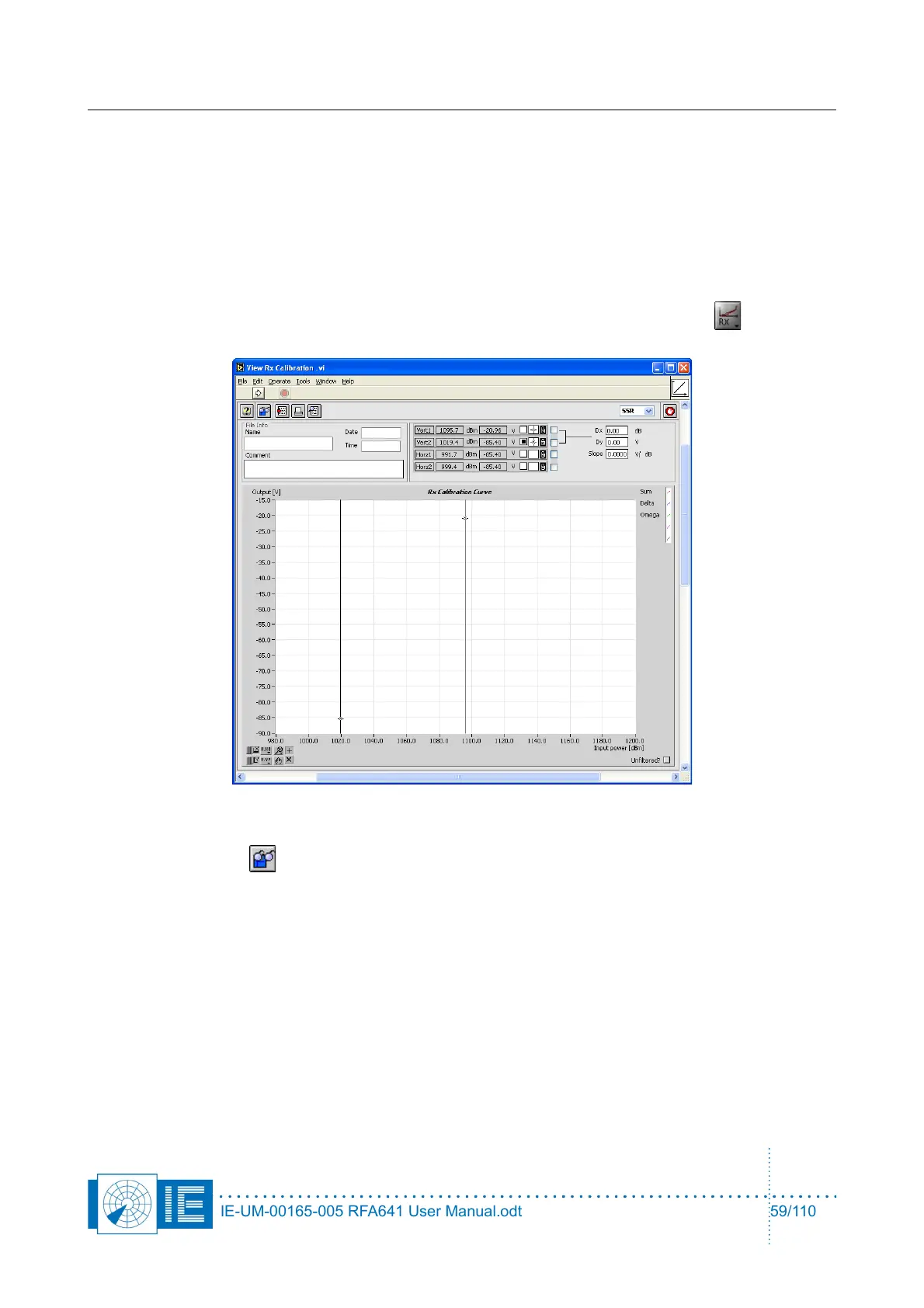 The View Receiver Calibration software is loaded from the RASS-S Toolbox using the Rx button (in the