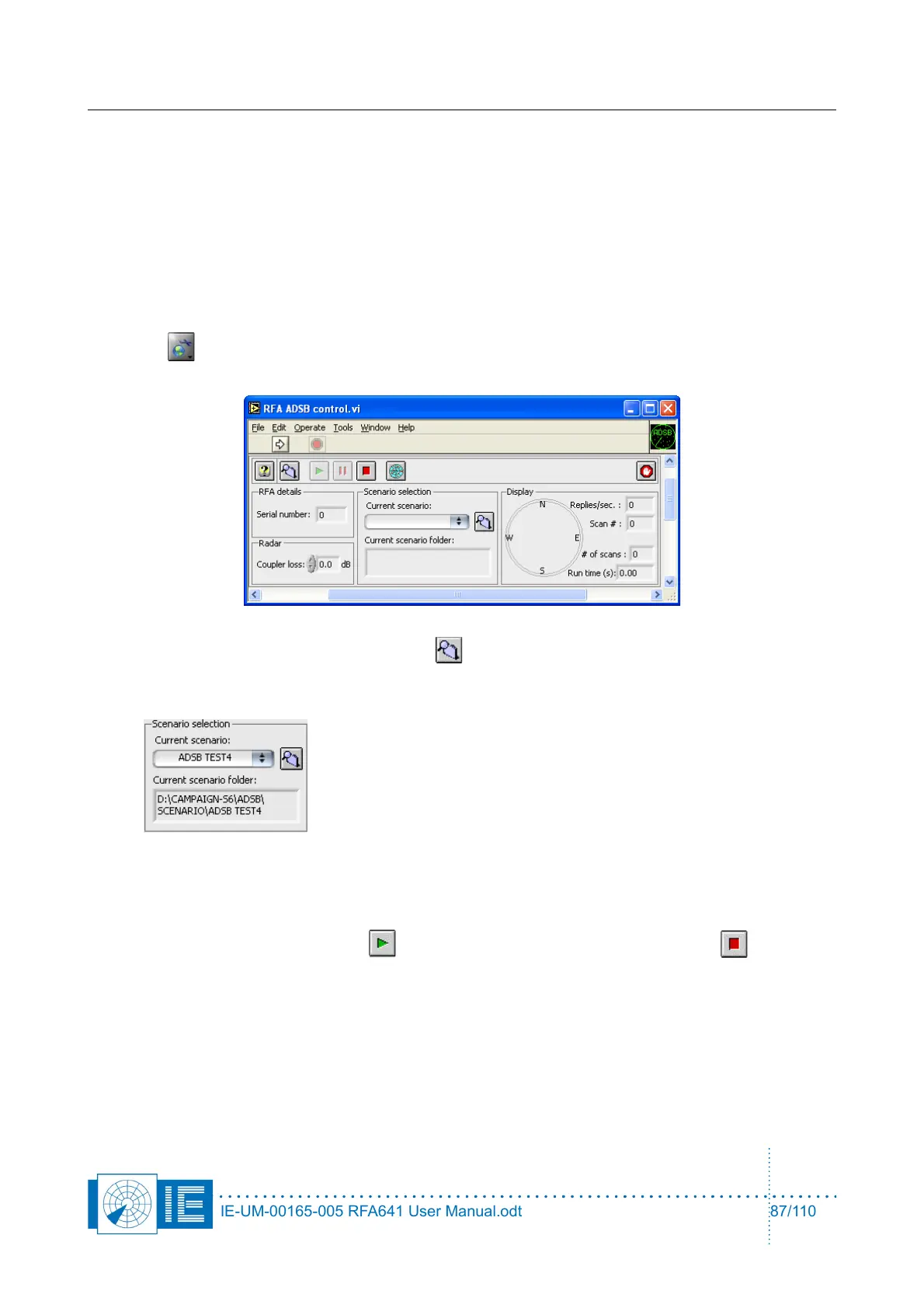 1. To run a compiled ADS-B scenario, you have to load the RFA ADSB control tool from the ADS-B