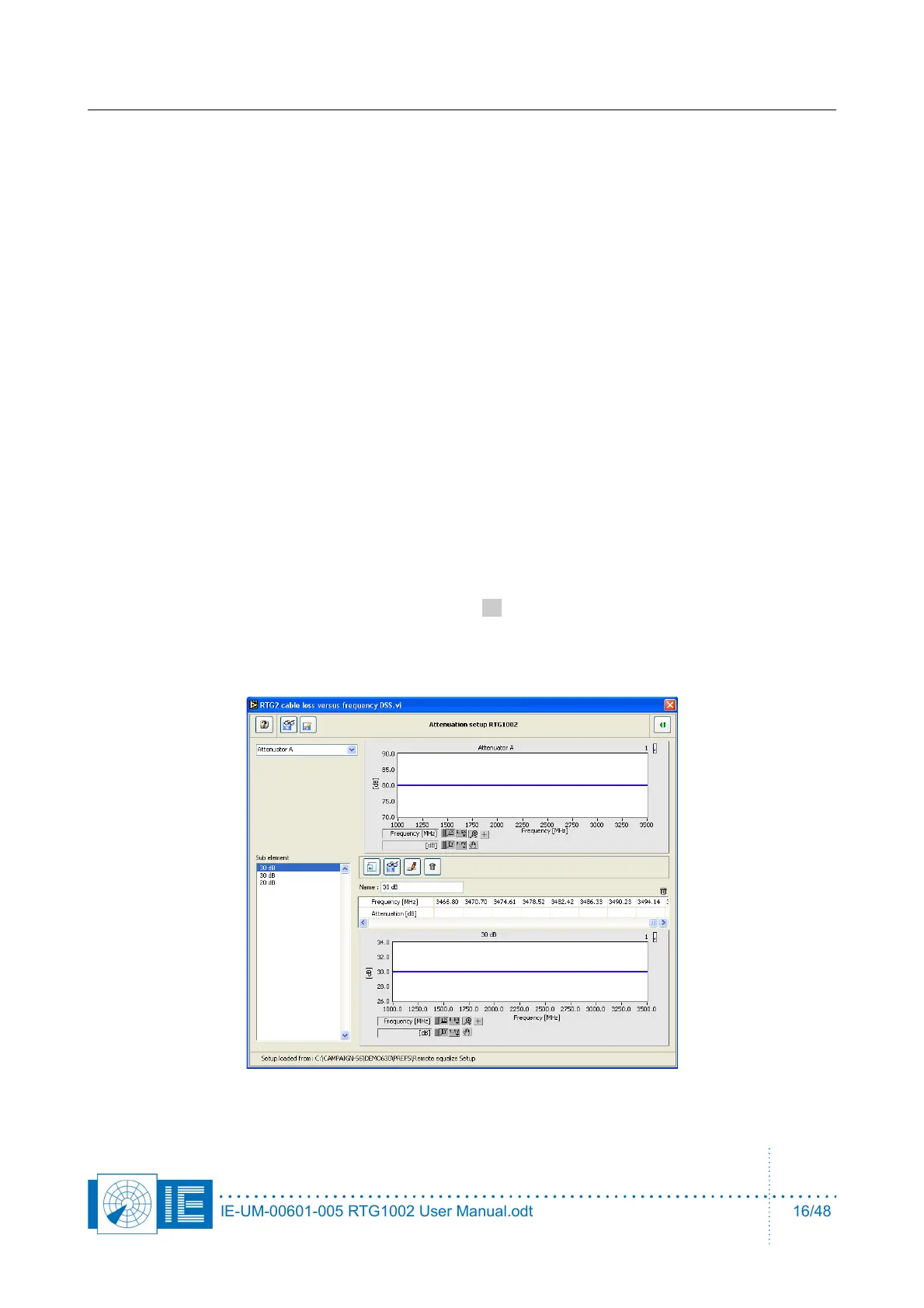 4. Create or load an equalize table for Attenuator B. This table will compensate variations in the cable