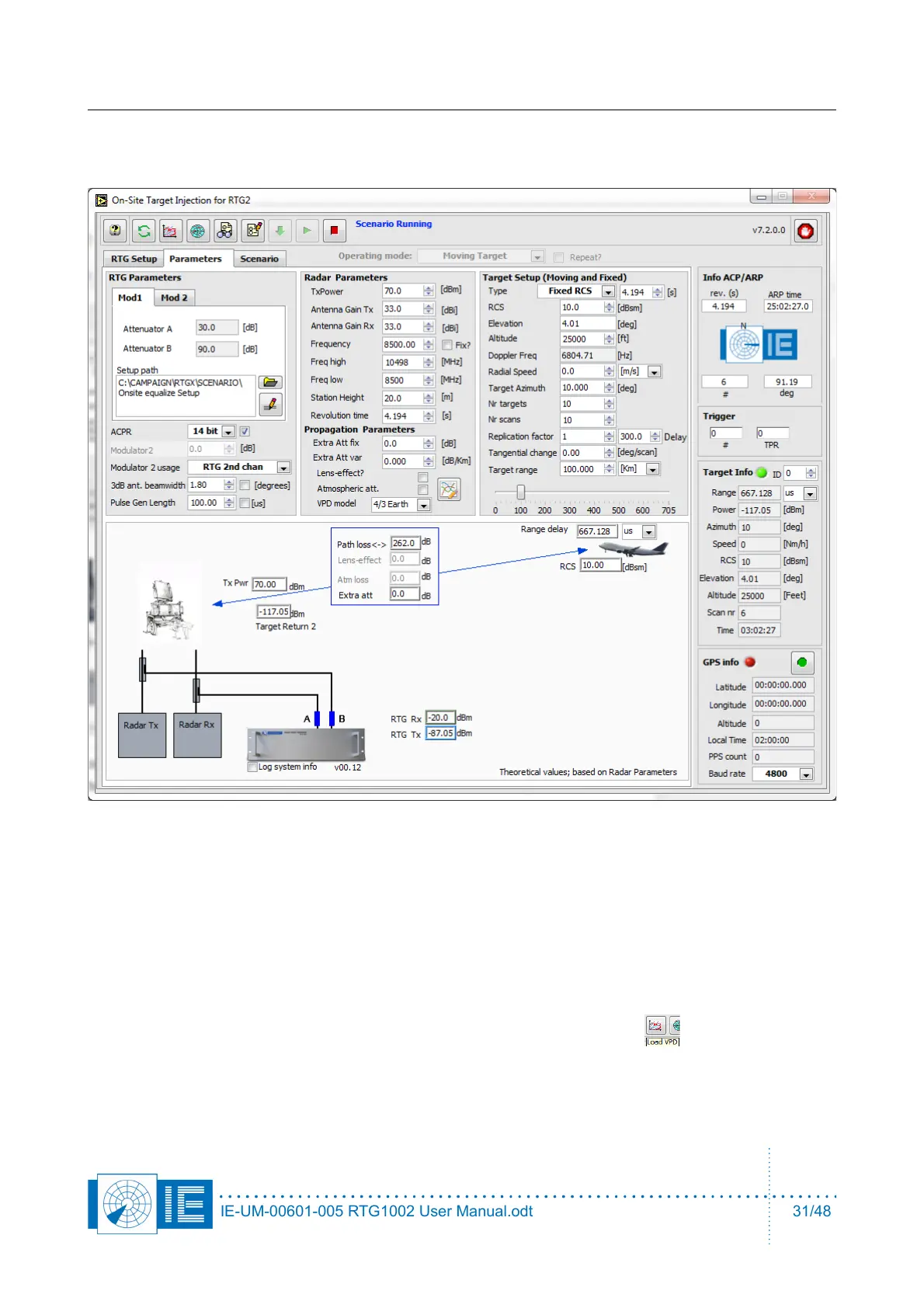 4. The horizontal 3dB beam width of the radar antenna must be entered in section of RTG parameters.