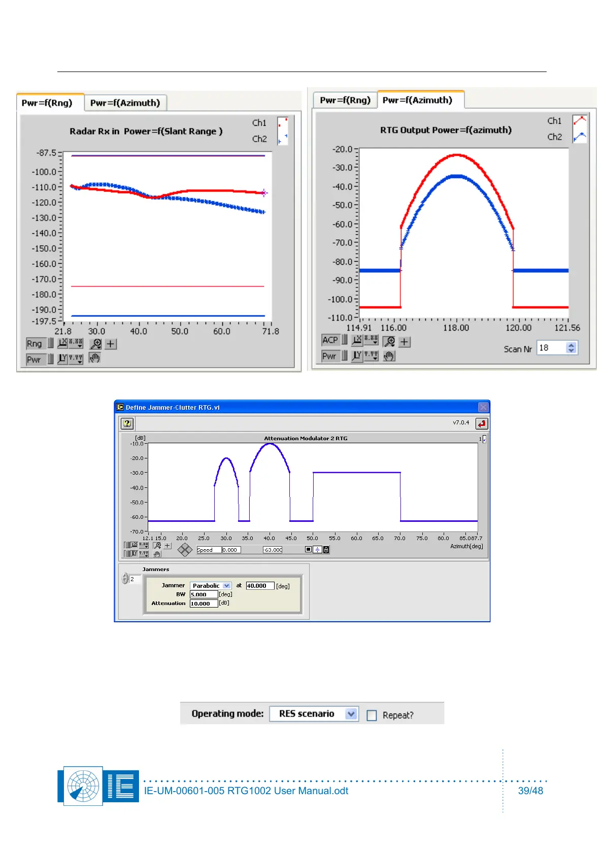 Verify the RTG1002 output power vs azimuth. This view is selectable for every scan nr of the scenario.