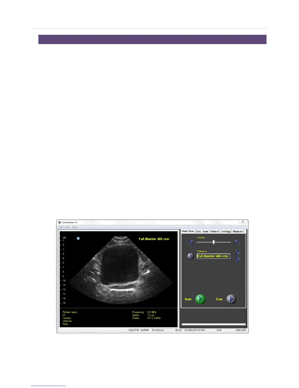 The ViewBladder 10 display is divided into three sections: