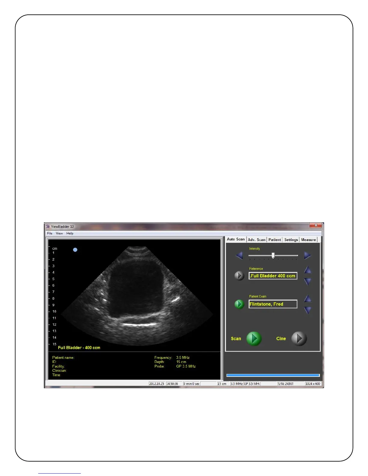 scan, and includes measurements, calculations, and annotations. You can perform a bladder
