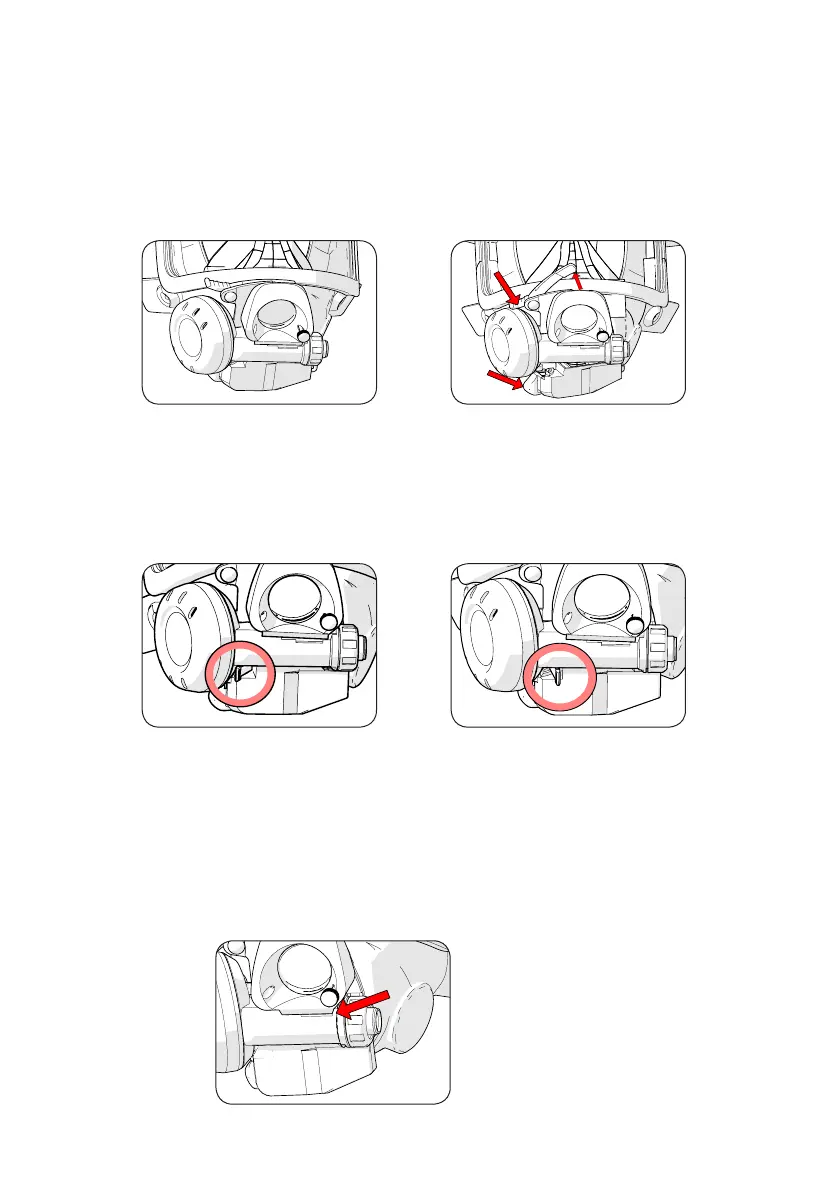 naar beneden om de ademhalingsautomaat op zijn plaats vast te zetten. In de