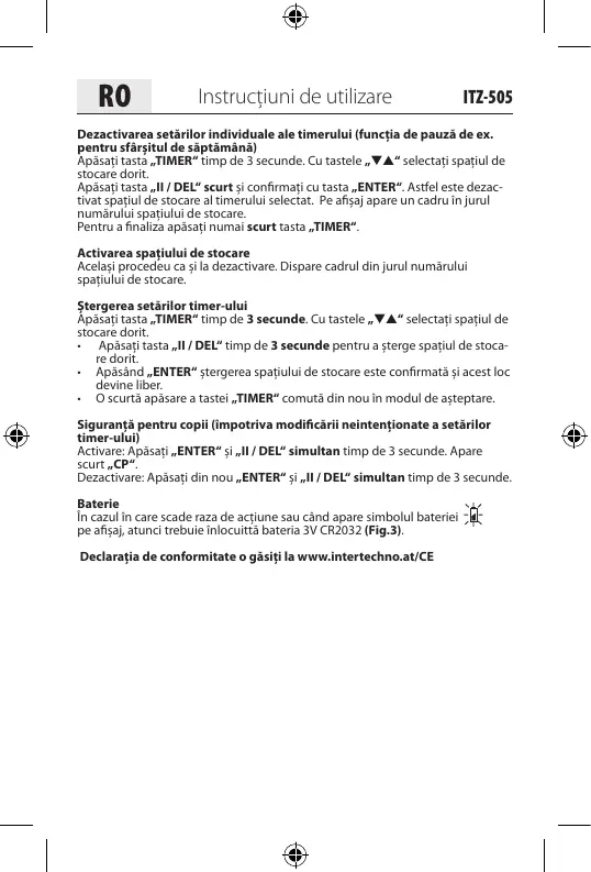 pe afișaj, atunci trebuie înlocuittă bateria 3V CR2032 (Fig.3).