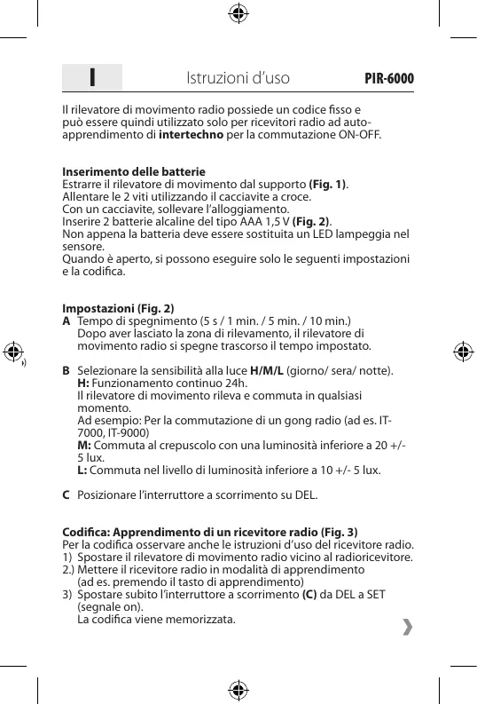 Estrarre il rilevatore di movimento dal supporto (Fig. 1).