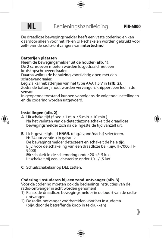 De draadloze bewegingsmelder heeft een vaste codering en kan