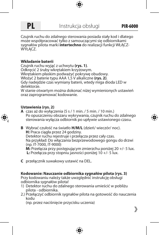 1) Detektor ruchu do zdalnego sterowania umieścić w pobliżu