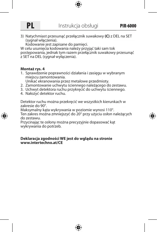 3. Uchwyt detektora ruchu przykręcić do uchwytu ściennego.